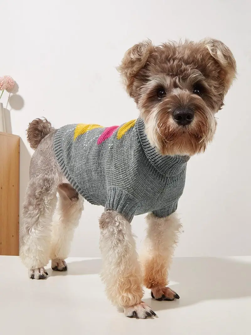 Ropa de perro M33 para otoño e invierno, diseño de cuello, color sólido, diamante cuadrado, Pomerania, Chihuahua, suéter, dachshund