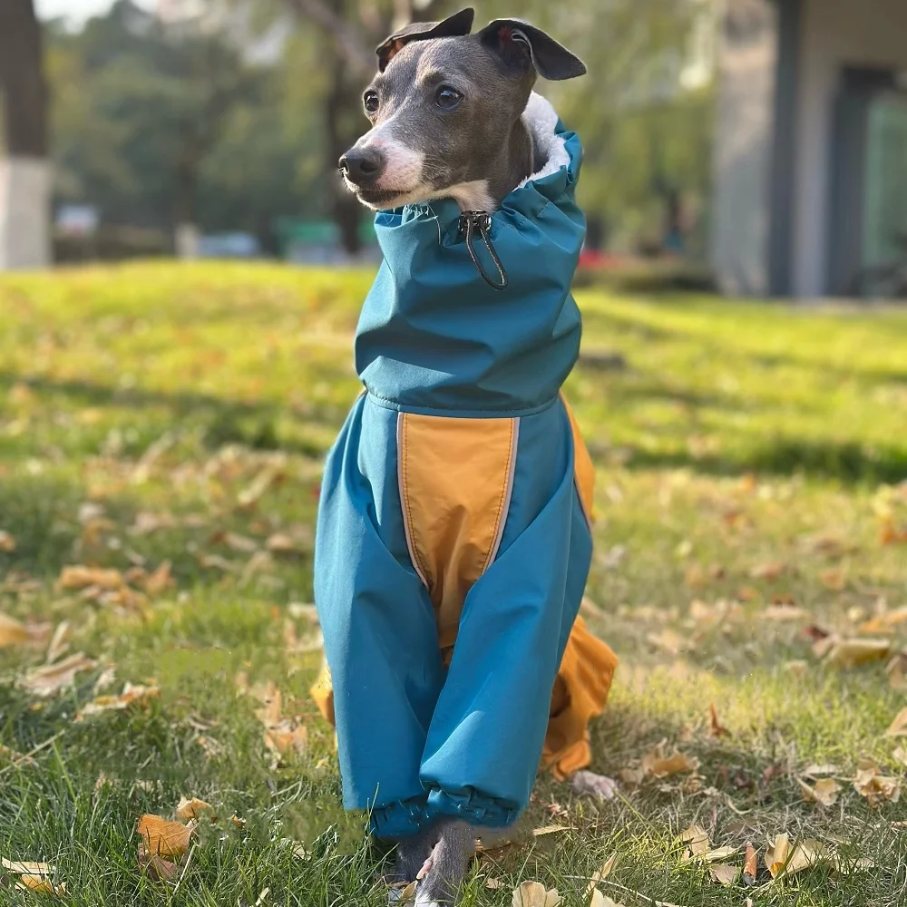 Es ideal para nuestro galgo italiano más grande (talla 4, columna vertebral de 38 cm, queda bien, aunque es posible usar algo debajo si es necesario). Creo que será ideal para los inviernos rusos, es bastante cálido; el perro se sintió demasiado caliente después de probárselo durante dos minutos en casa.