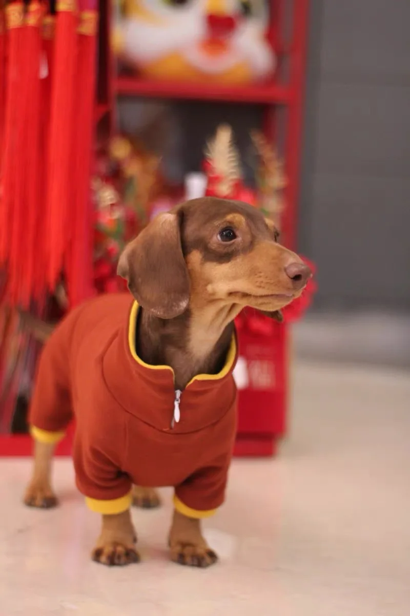 Ropa de Dachshund roja a la moda, pijamas elásticos para perros de salchicha suave de primavera y invierno, ropa cómoda para perros de tejón de otoño