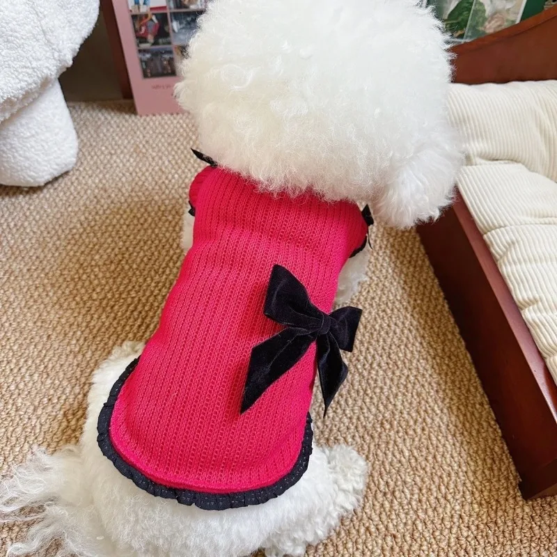 Ropa para perros, abrigo de burbujas con lazo de otoño/invierno, suéter grueso, Teddy para mascotas, vestido para cachorros de Año Nuevo, ropa para perros pequeños, suéter