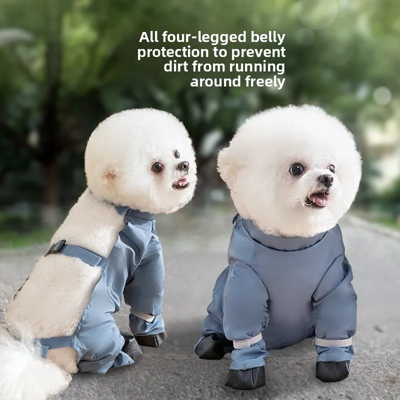 Ropa para perros, bolsa sencilla y versátil, pantalones antipolvo para el vientre y los pies, pantalones impermeables y antisuciedad para el polvo para mascotas