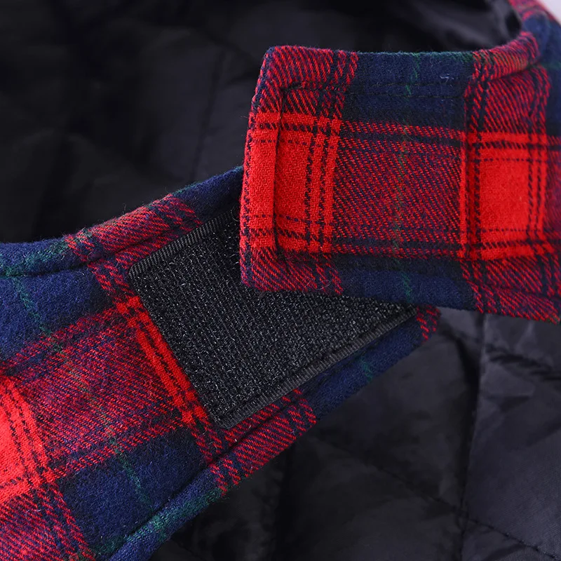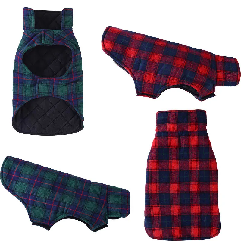 Estilo británico rojo invierno acolchado ropa para perros a cuadros cálido chaleco para mascotas chaqueta para perros pequeños medianos Bulldog francés cachorro capa abrigo