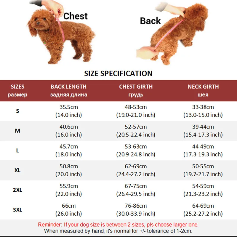 Por favor mide el de tu perro.Longitud de la espaldayTamaño del pecho¡antes de comprar!