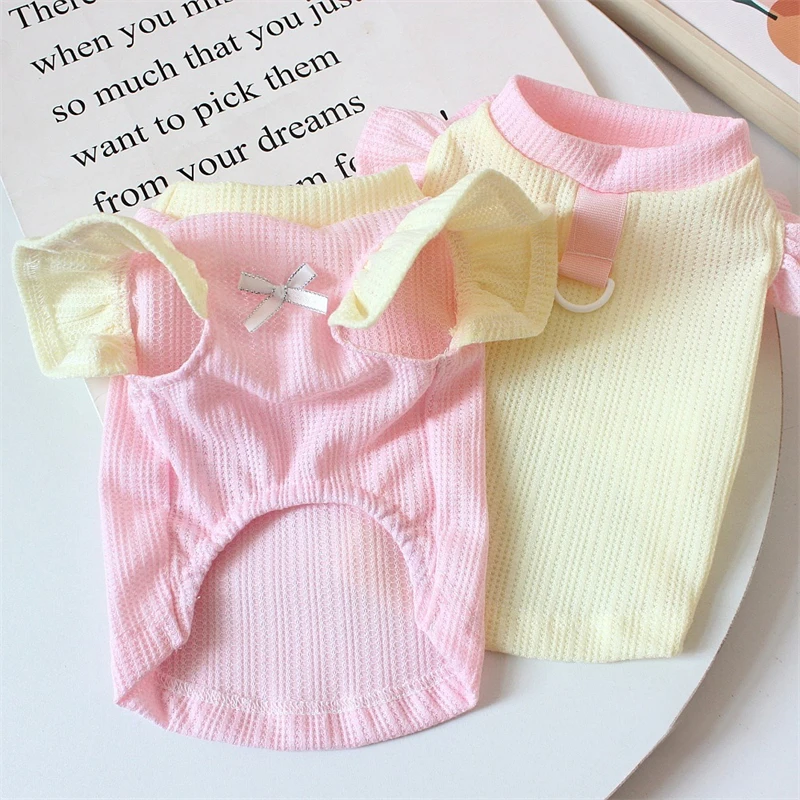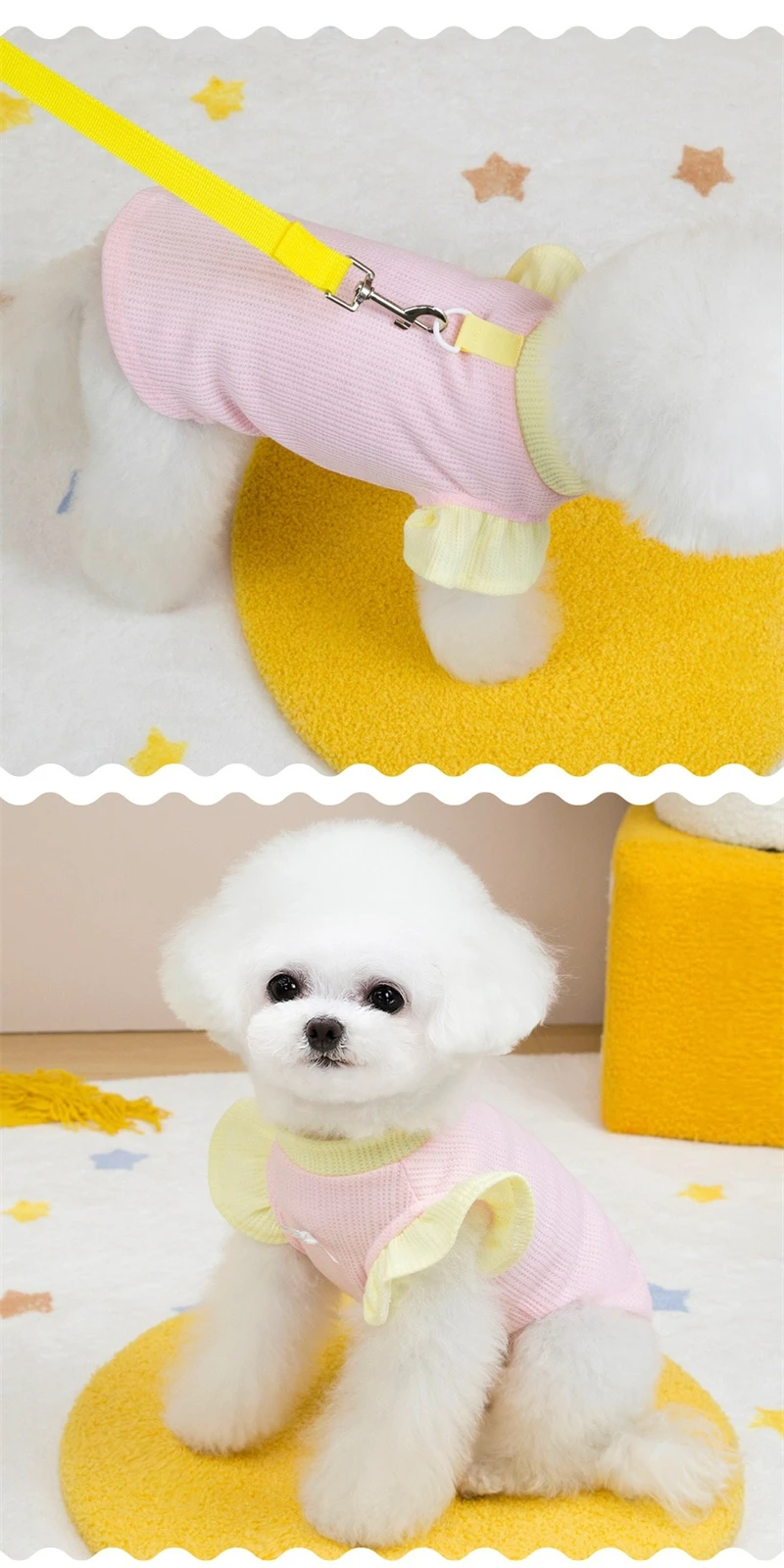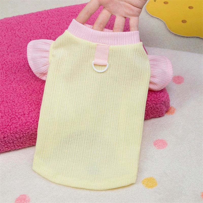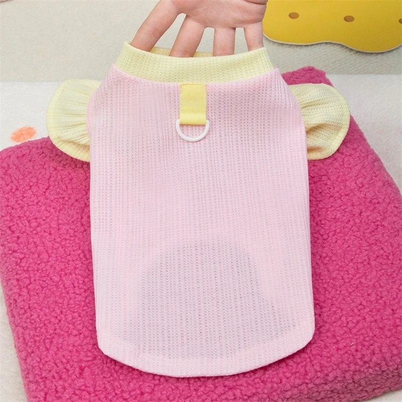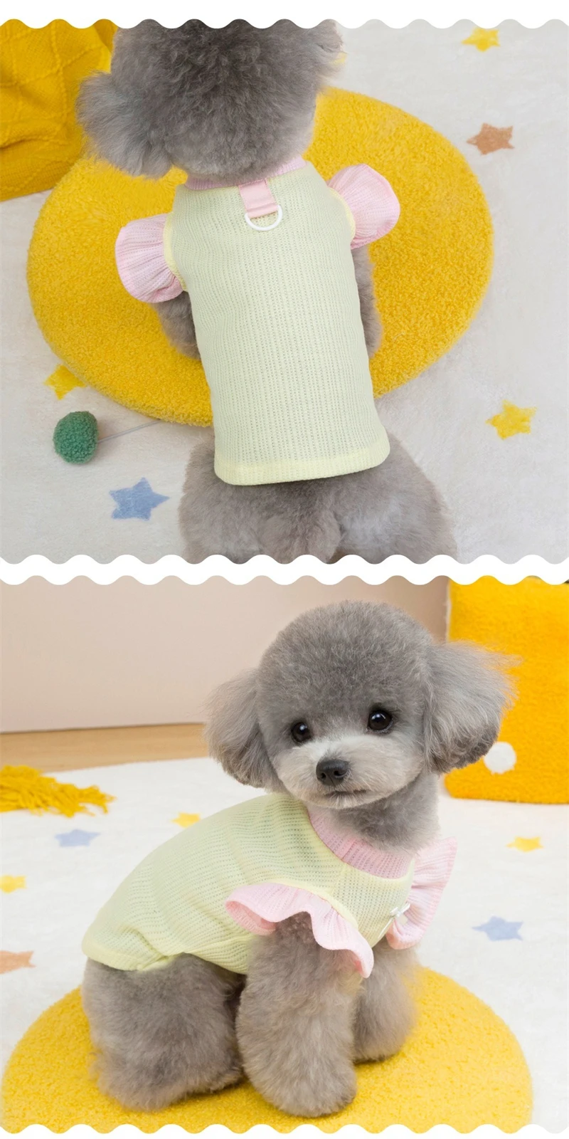 Ropa para perros de compañía de Color caramelo, manga aleteo, transpirable, de verano, para cachorros, de una pieza, para exteriores, chalecos para perros pequeños y gatitos