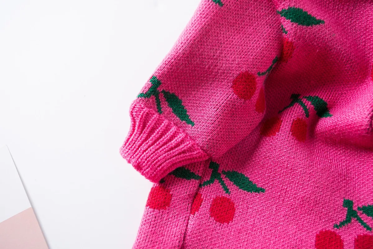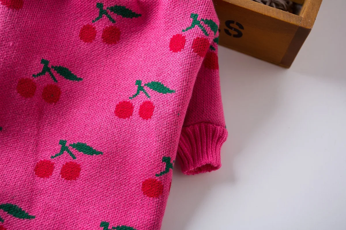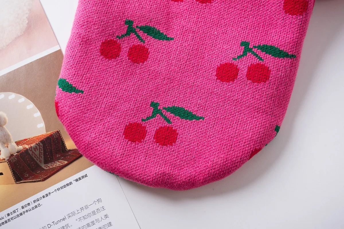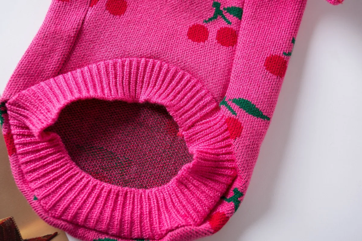 Ropa para perros de compañía, cuello alto de invierno, ropa de Navidad para perros pequeños, suéter de cereza bordado con rejilla de diamantes, ropa para cachorros, perro pequeño