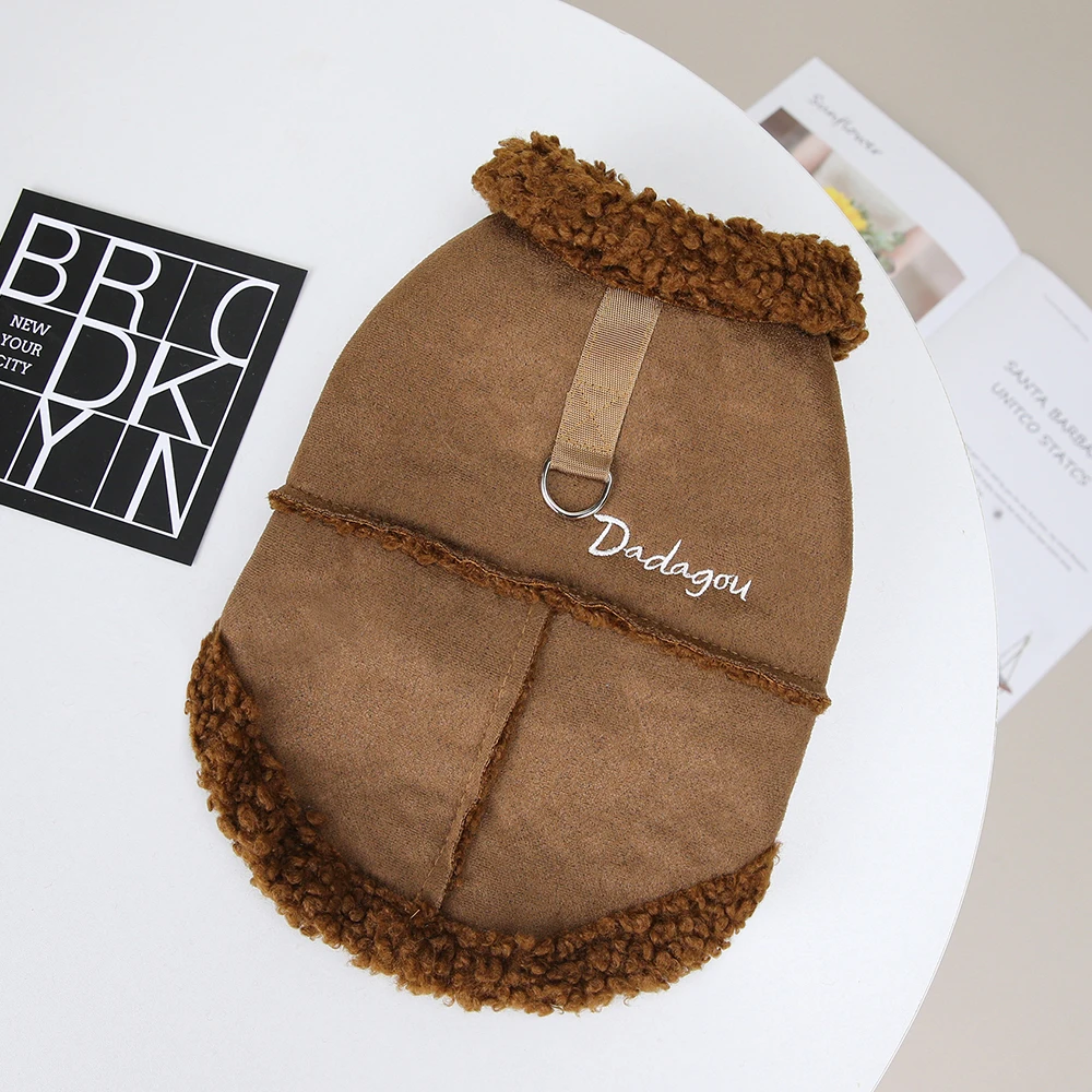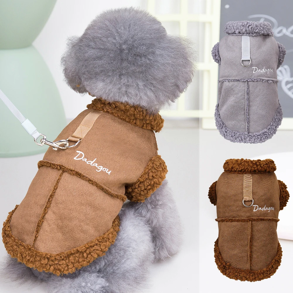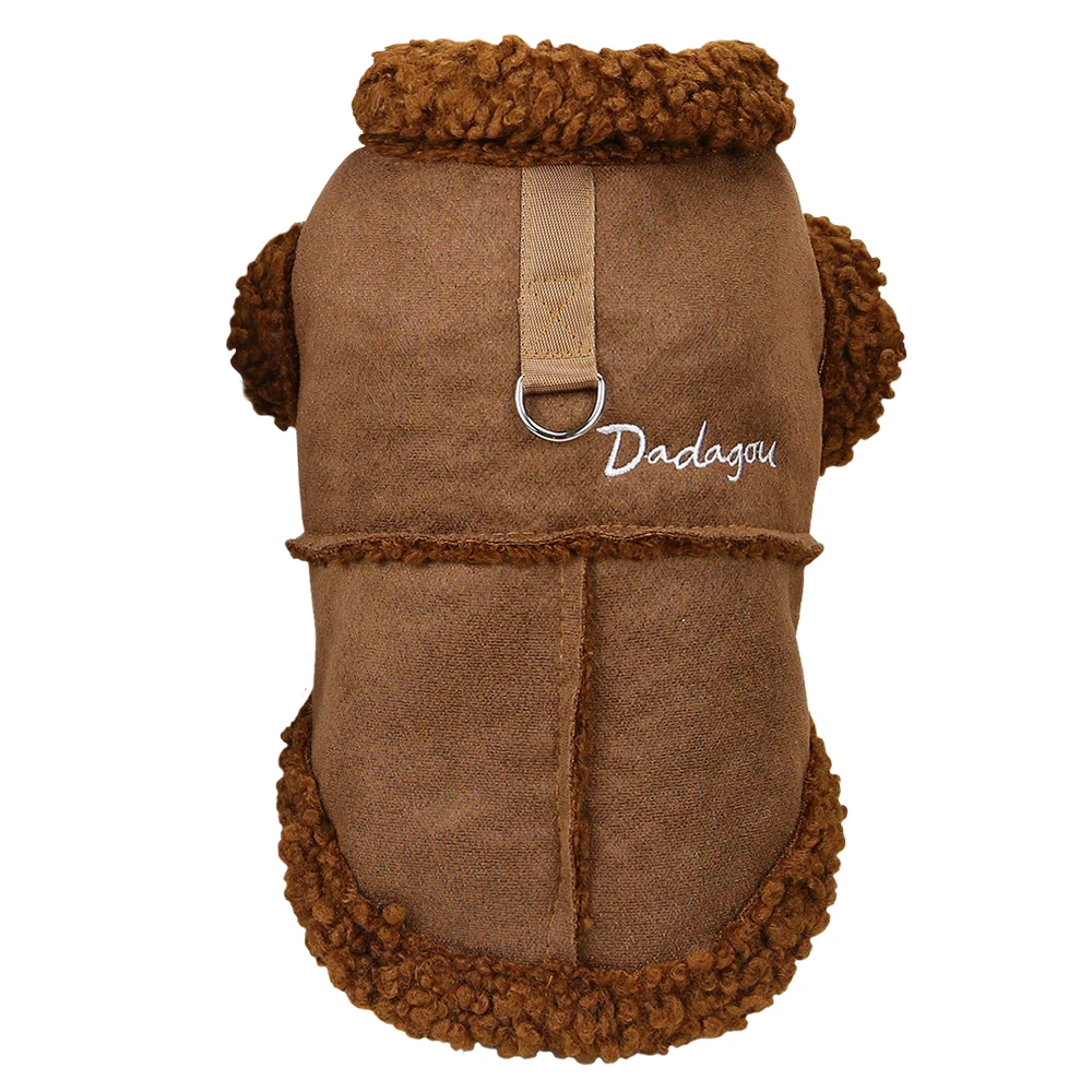 Ropa para perros con cuello de piel cálido, chaqueta de ante para perros, abrigo de invierno, disfraz para cachorros, traje suave para perros pequeños y medianos, ropa para mascotas