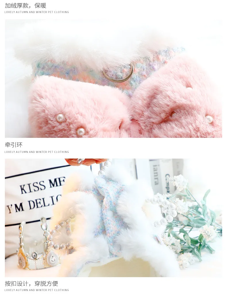 Ropa para perros, disfraz cálido de princesa para perros de invierno, chaleco con lazo, chaqueta o perros pequeños, medianos y grandes, Chihuahua Bulldog