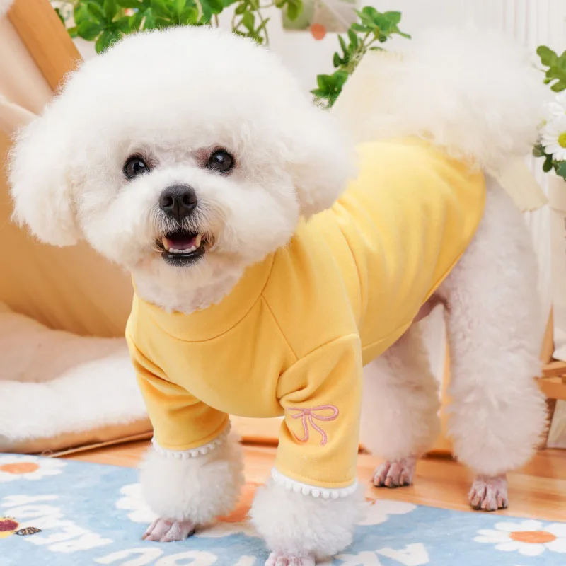 Ropa dulce para perros, sudadera con capucha para mascotas, camisa inferior para perros pequeños y medianos, Dachshund, Chihuahua, ropa amarilla y gris para cachorros