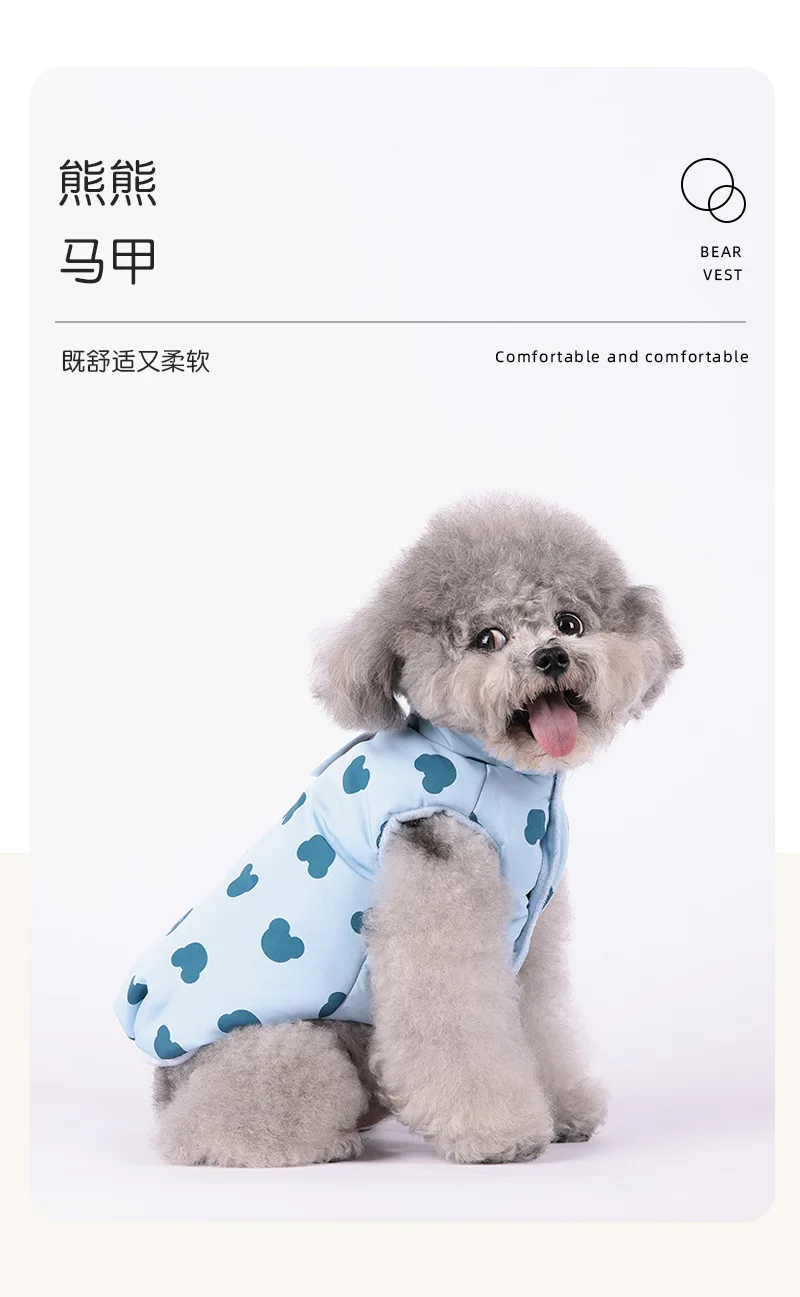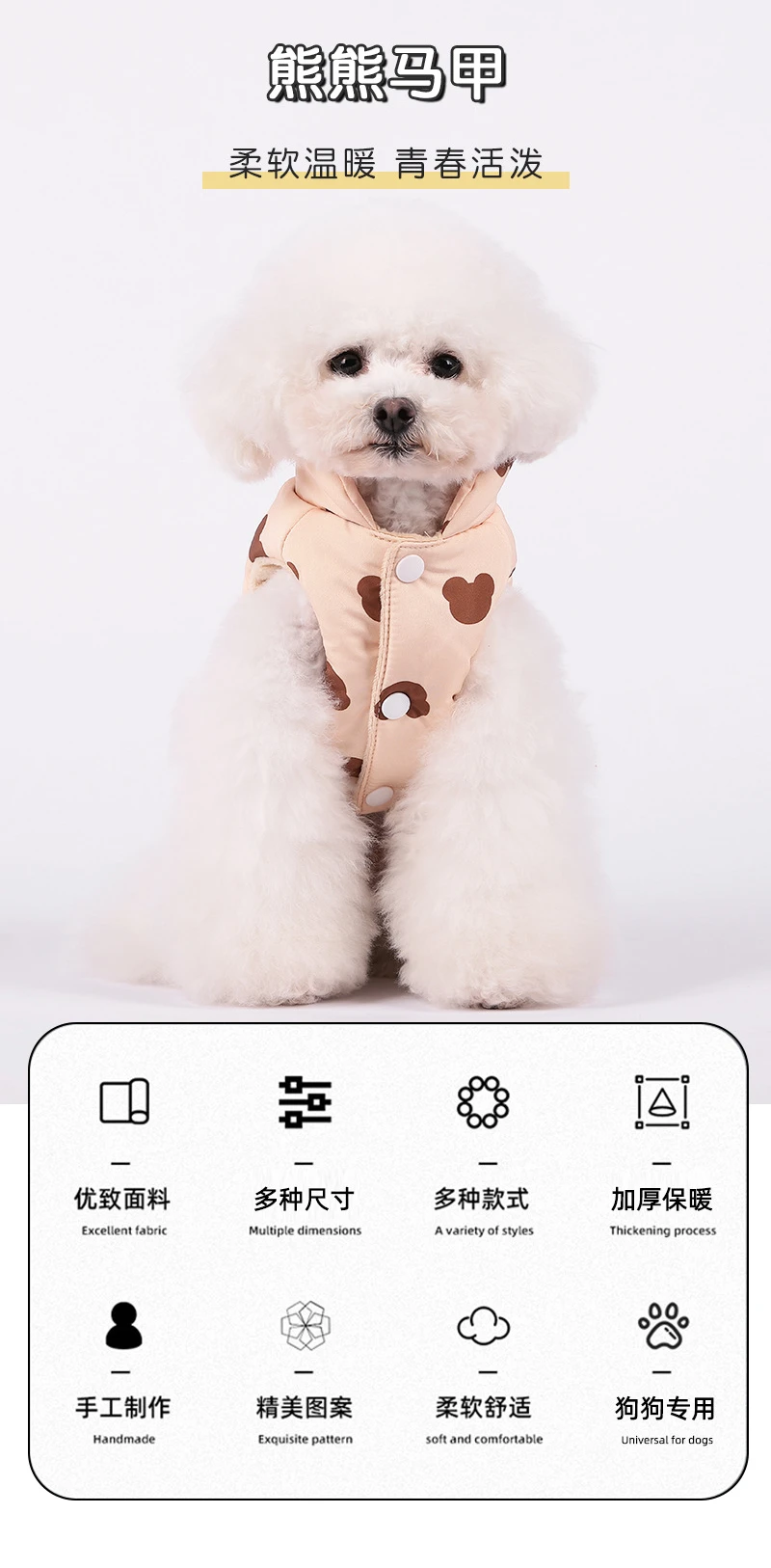 Ropa para perros con estampado de oso de peluche para otoño e invierno, chaleco grueso y cálido a prueba de viento, Parkas para perros