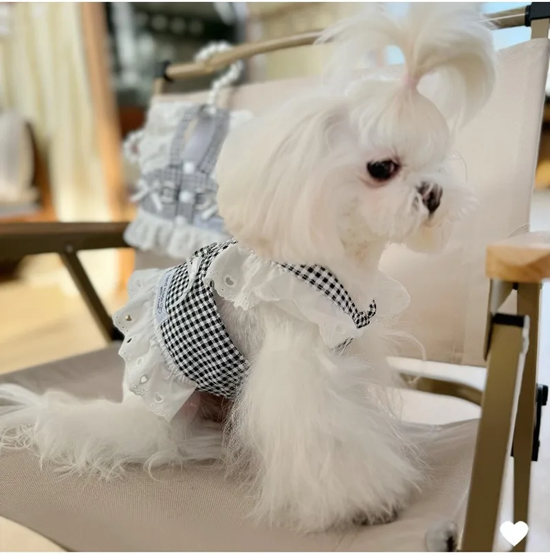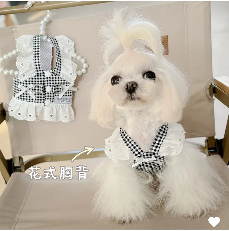 Ropa para perros, falda de encaje, estilo Pastoral, arnés a cuadros negro, vestidos para cachorros, arnés Universal, vestido de princesa Retro extraíble