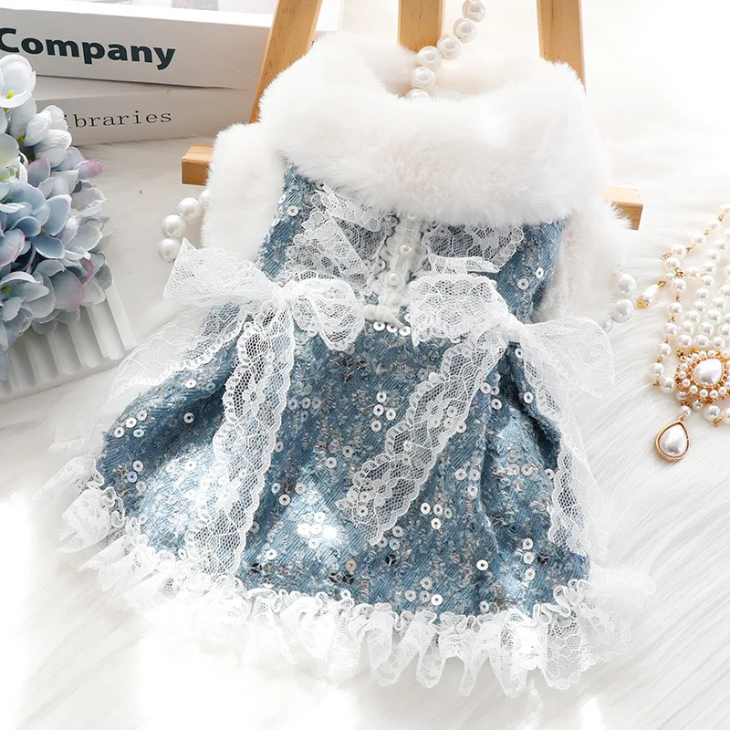 Ropa para perros, falda de invierno para gatos de otoño e invierno, ropa acolchada de algodón, lentejuelas vaqueras pequeñas y fragantes, suministros para mascotas de peluche para perros pequeños