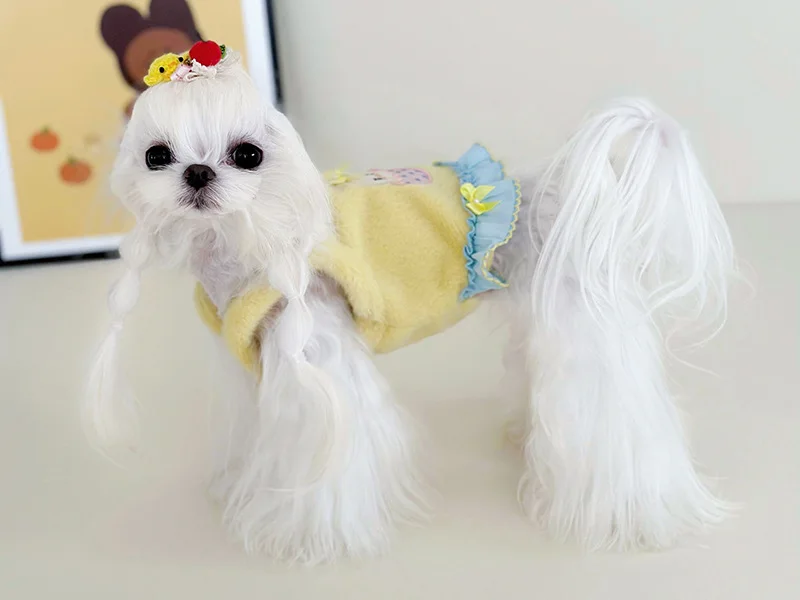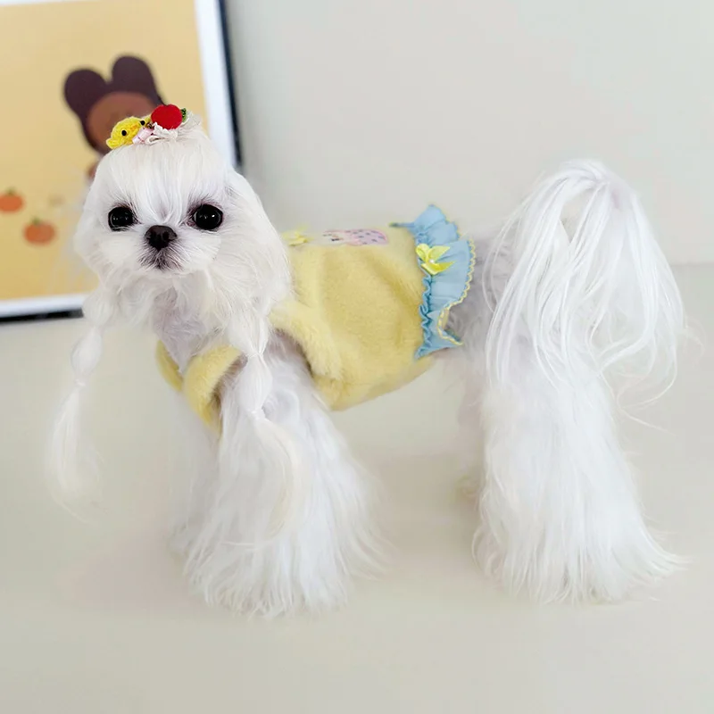 Ropa para perros y gatos, Otoño e Invierno, piel de visón de imitación, camisola de felpa bonita, falda de encaje con lazo de perlas, abrigo corto, ropa para cachorros