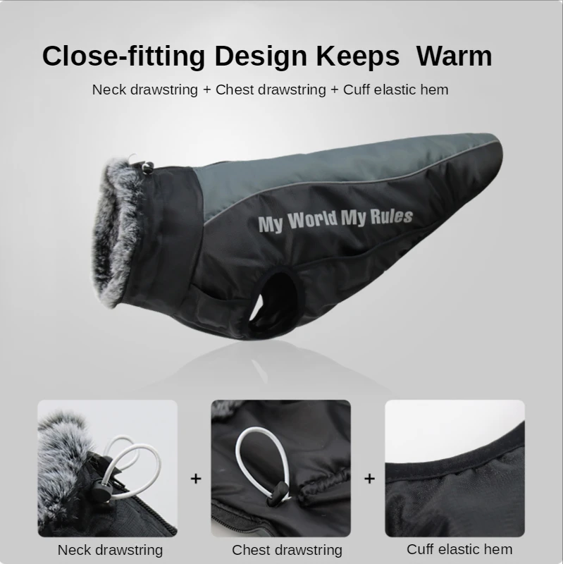 Large Dog Jacket Fur Collar Winter Dogs Clothes For Pet Waterproof Big Dog Coat French Bulldog Pug Outfit