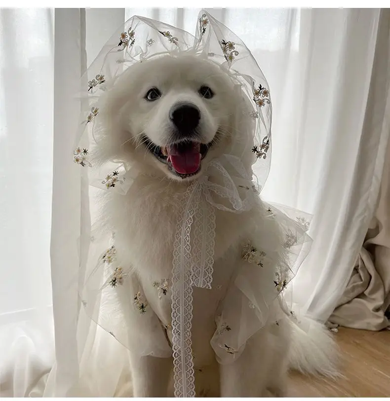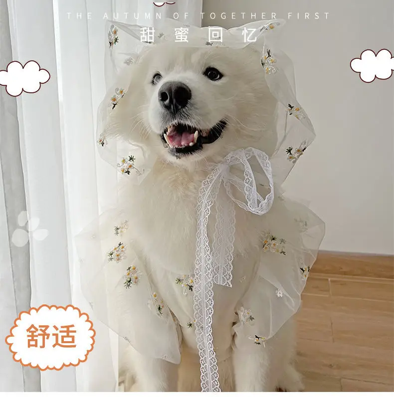 Ropa para perros grandes, traje de boda fino, vestido de novia, sombrero de pelo dorado Satsuma, vestido de perro grande, ropa de primavera y verano para mascotas