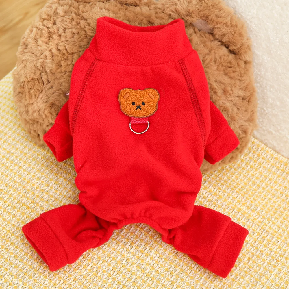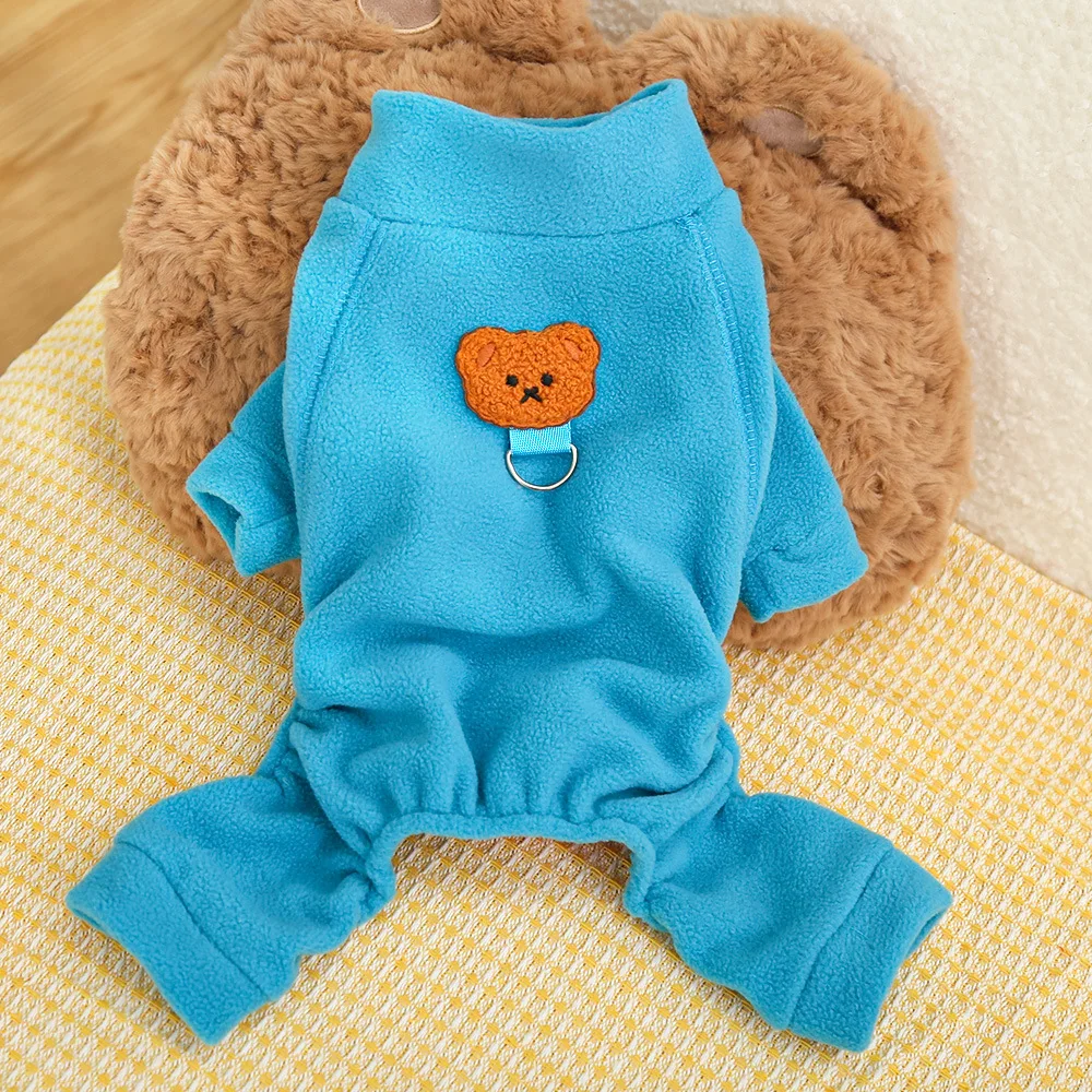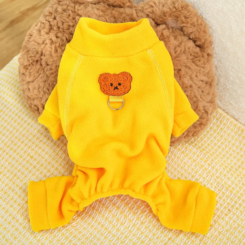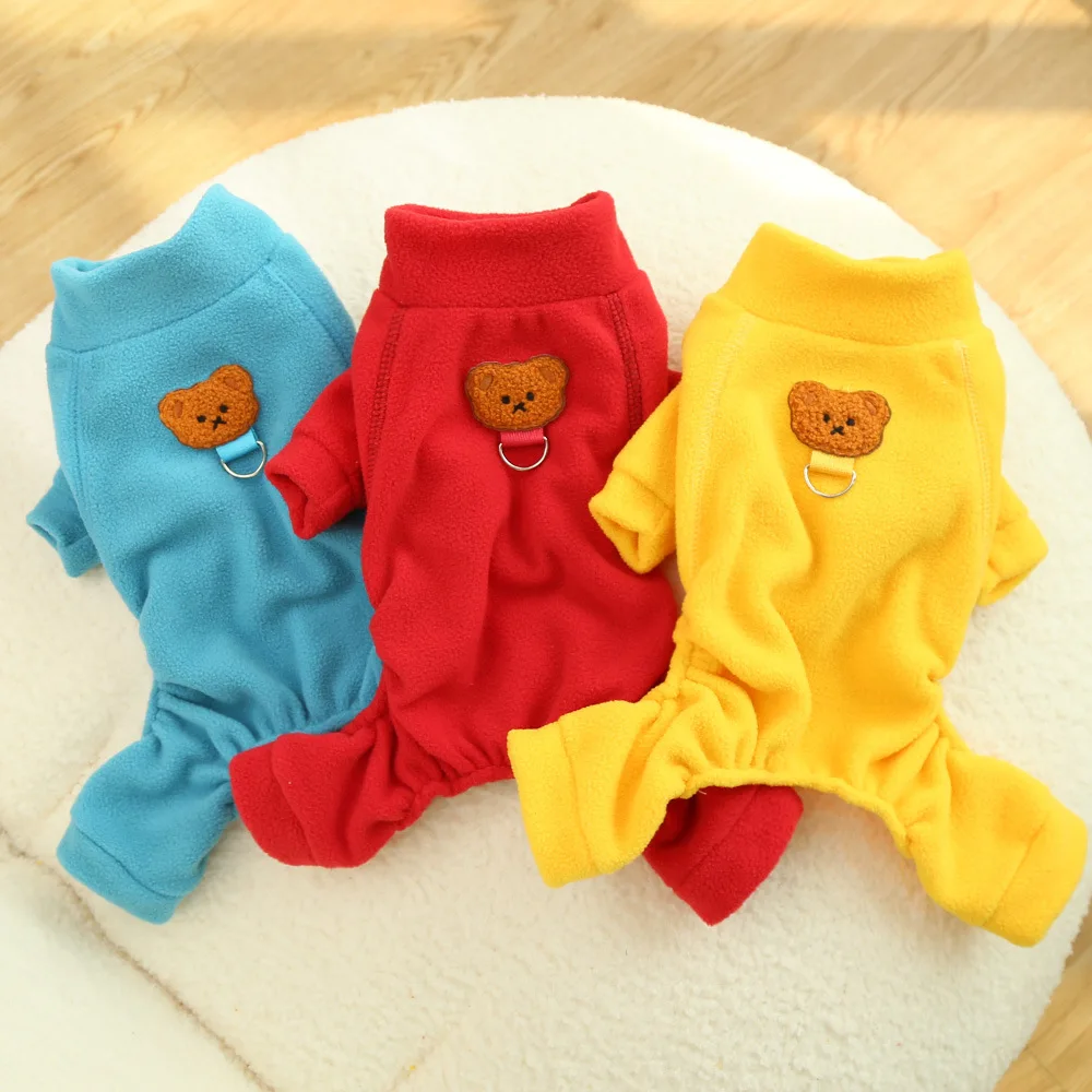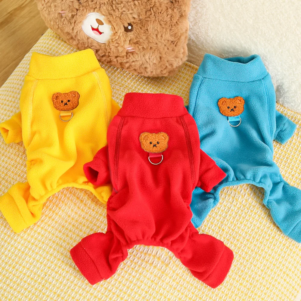 Ropa para perros, monos suaves y cálidos de lana para perros, bonito disfraz con patrón de oso para mascotas, abrigos con arnés para cachorros y gatos pequeños, 1 ud.