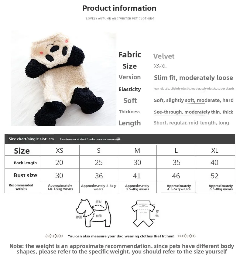 Ropa para perros Otoño e Invierno Grueso Lindo Fubao Panda Tracción Body Suit Perros Pequeños Productos para Mascotas