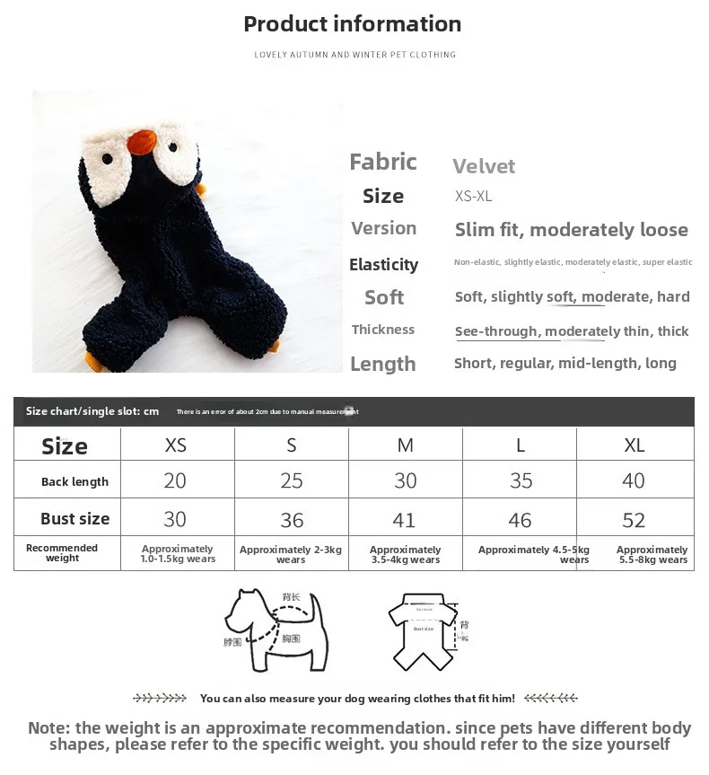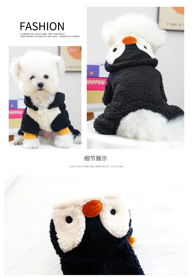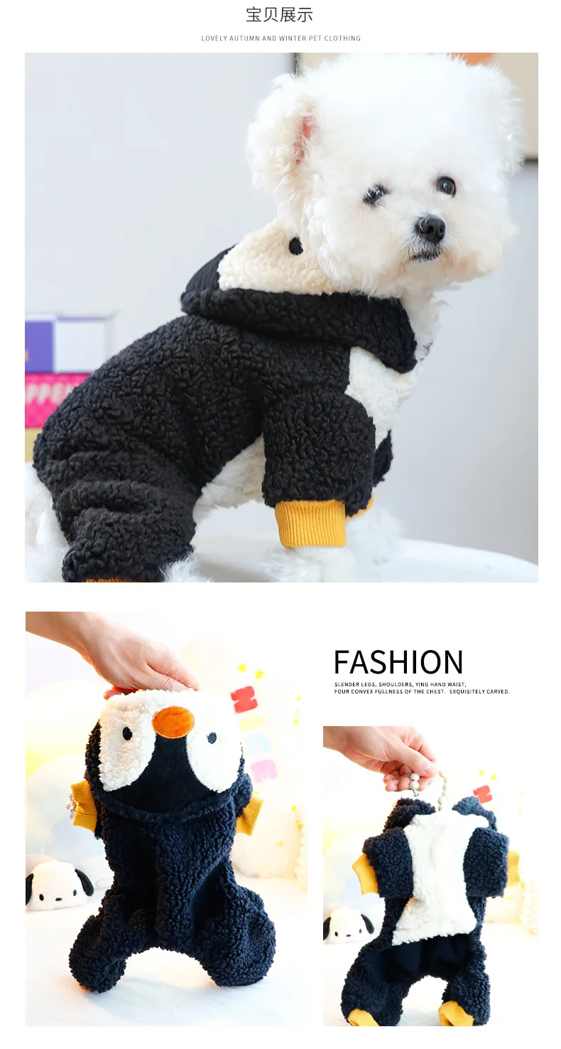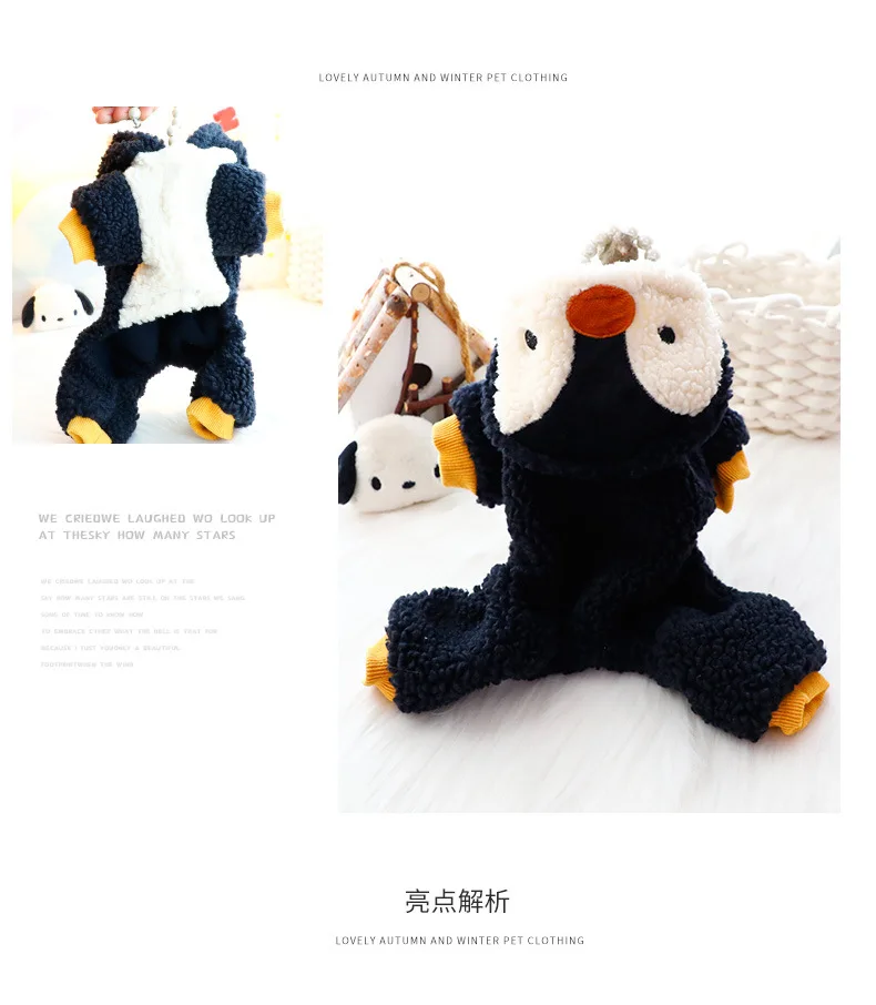 Ropa para perros Otoño e Invierno grueso lindo pingüino traje de cuerpo de tracción de cuatro patas suministros para mascotas para perros pequeños
