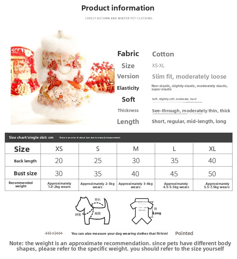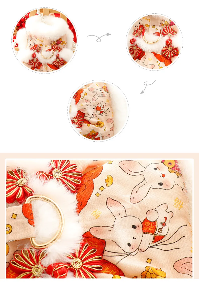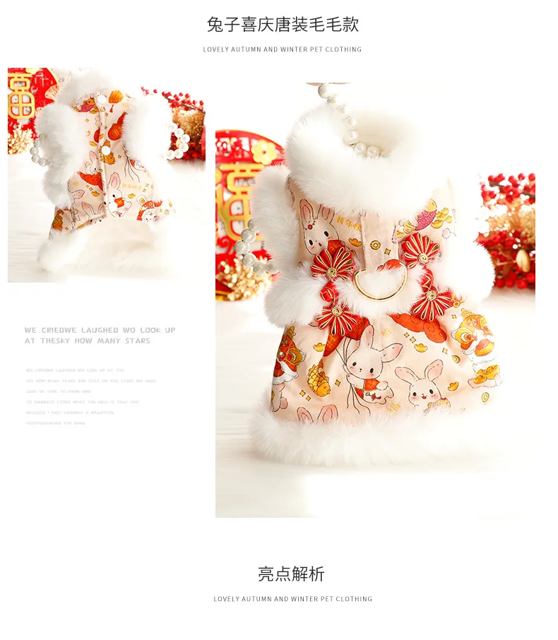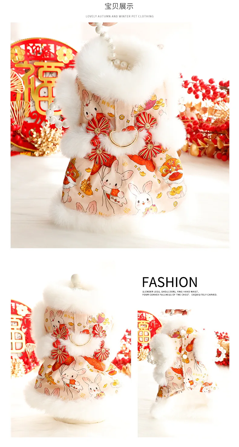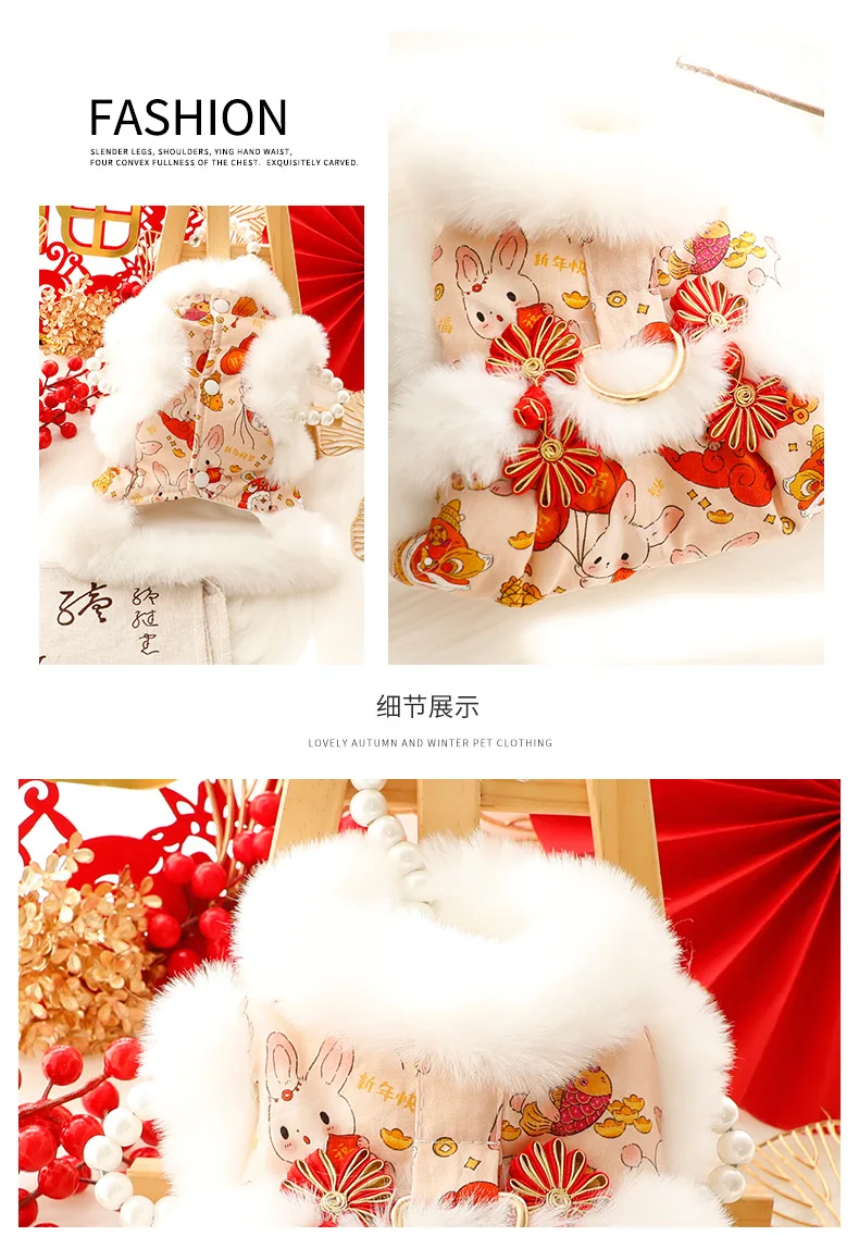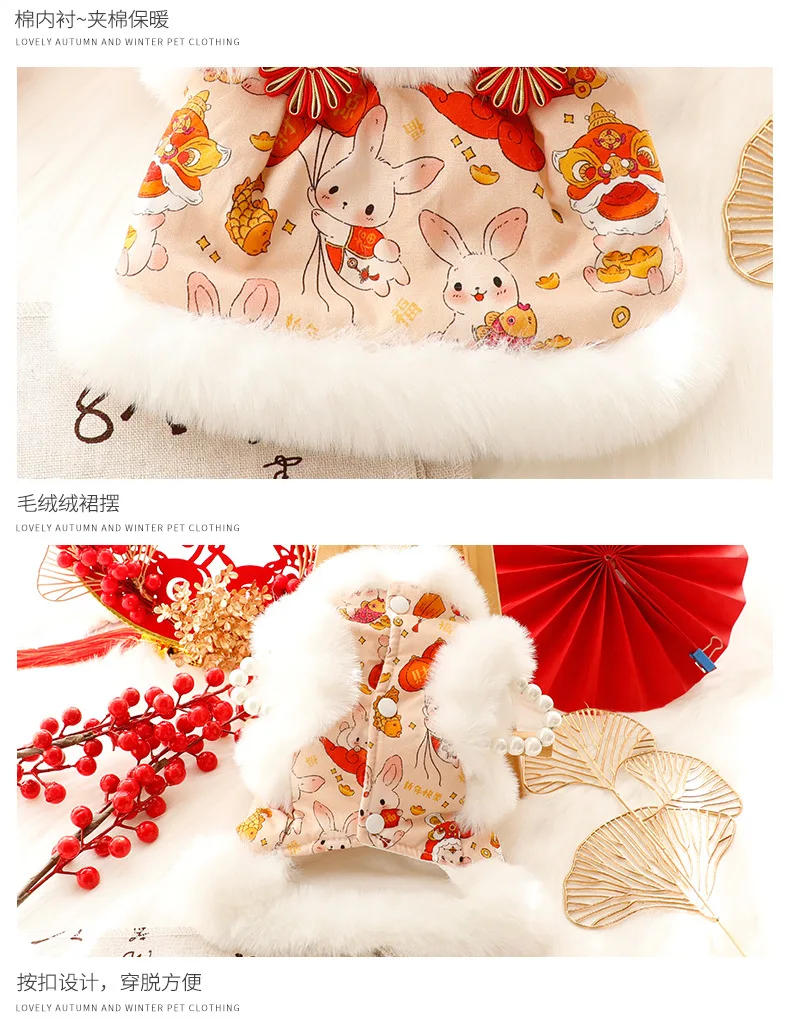 Ropa para perros Otoño e Invierno, ropa acolchada de algodón de princesa para gatos, ropa Tang, suministros festivos para mascotas de peluche para perros pequeños de Año Nuevo