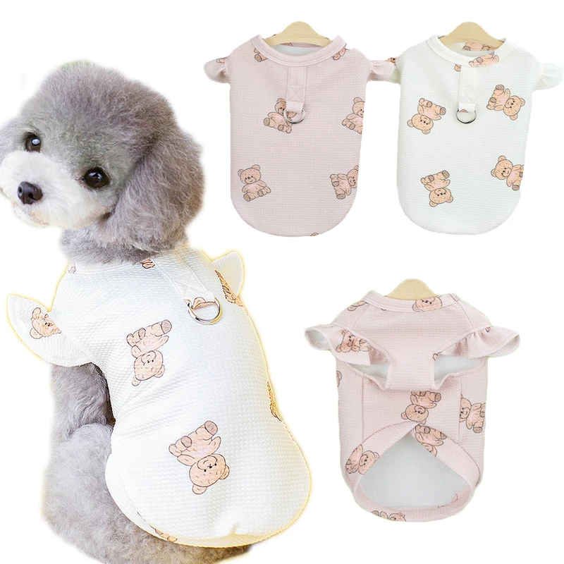 Ropa para perros con patrón de oso, sudaderas con capucha de manga voladora rosa y Beige, sudadera para cachorros y gatos, camiseta para perros pequeños y medianos, Pomerania Yorks XL