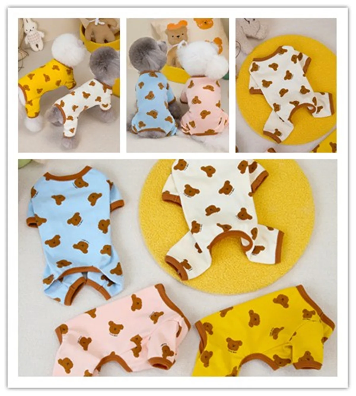 Ropa para perros pequeños de oso de dibujos animados, mono de cuatro patas de alta elasticidad para gatos, protección para primavera y otoño, monos para mascotas Bulldog Francés