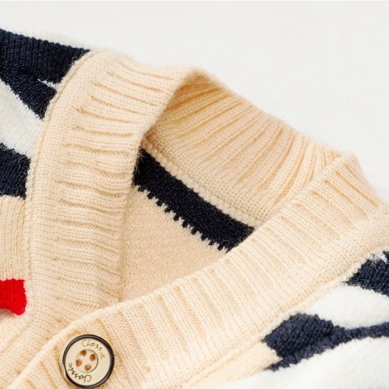 Característica:Suéter cárdigan con estampado completo de osito bonito/Suéter cárdigan de punto a rayas en contraste/Contacto de punto fino con la piel sin picazón/Diseño bonito de patrón de mascota/Lindo y juguetón/La tela es suave y cómoda/Aplicar suavemente a la piel