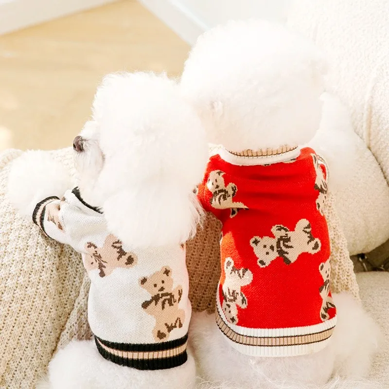 Ropa para perros pequeños, suéter de invierno cálido para perros, abrigo con estampado bonito para cachorros, suéter de punto suave para gatos, ropa para Chihuahua