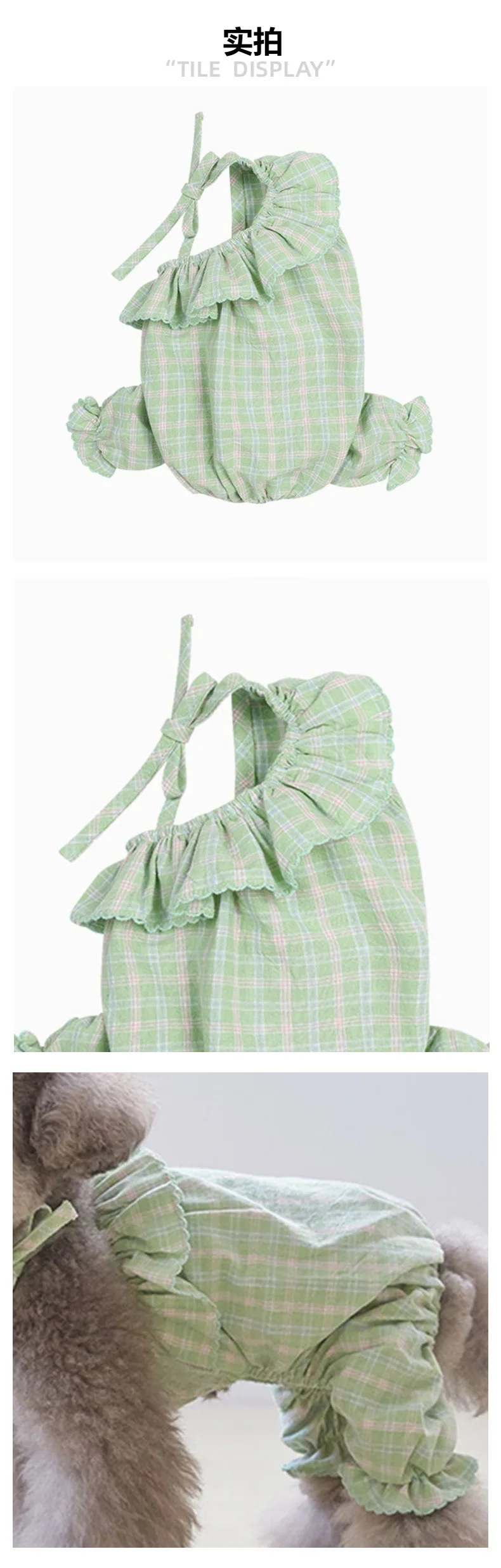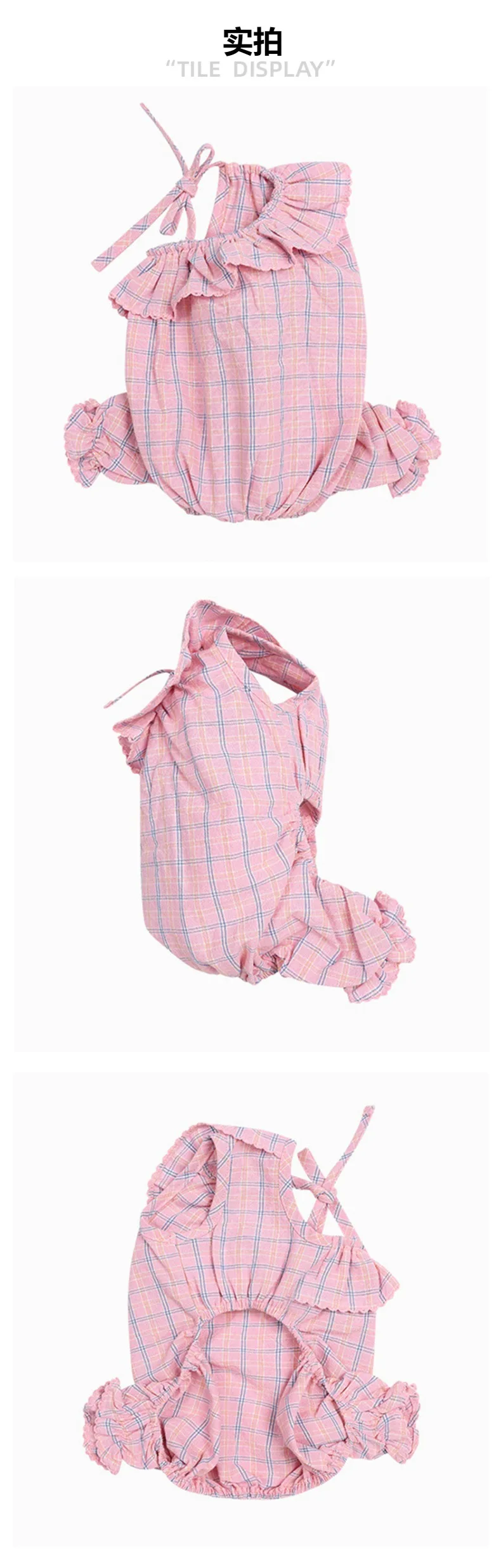 Ropa para perros de dos piernas con volantes alrededor de mono con tirantes a cuadros rosas, ropa para perros, sudadera para exteriores, XS-XL, mono de verano para perros de primavera