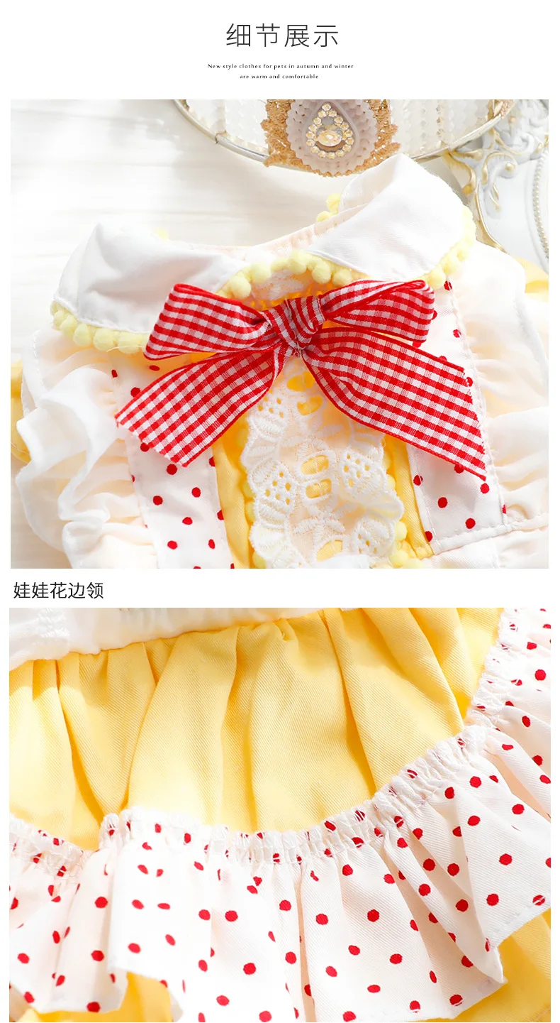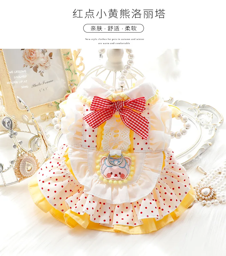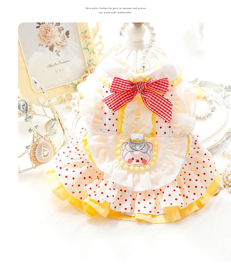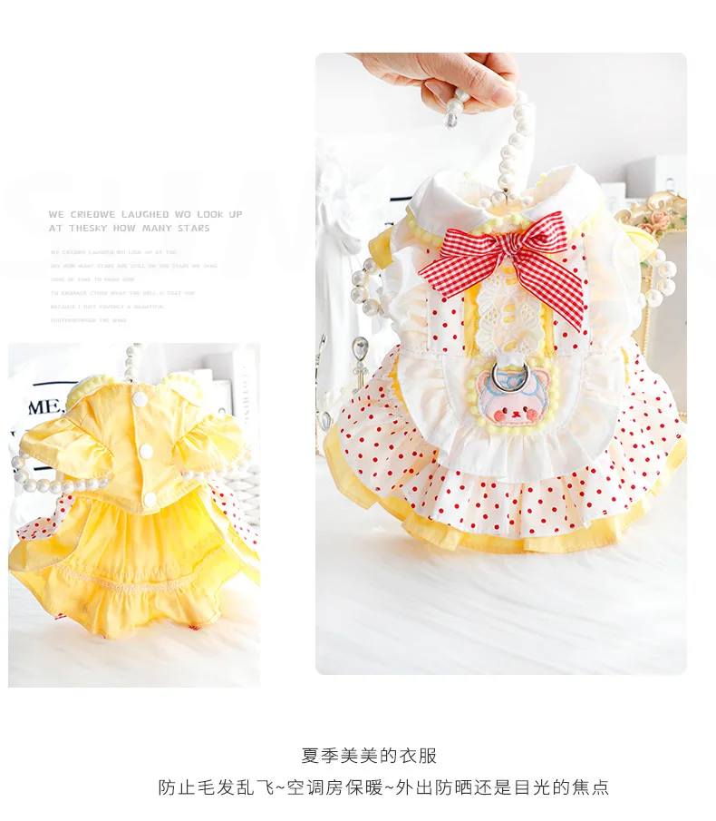 Ropa para perros primavera y verano vestido fino de princesa para gatos punto rojo oso amarillo tracción Lolita suministros para mascotas para perros pequeños