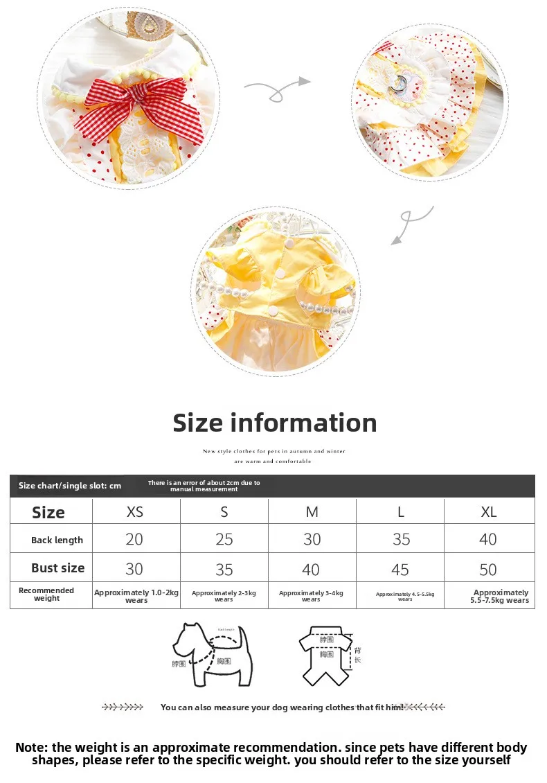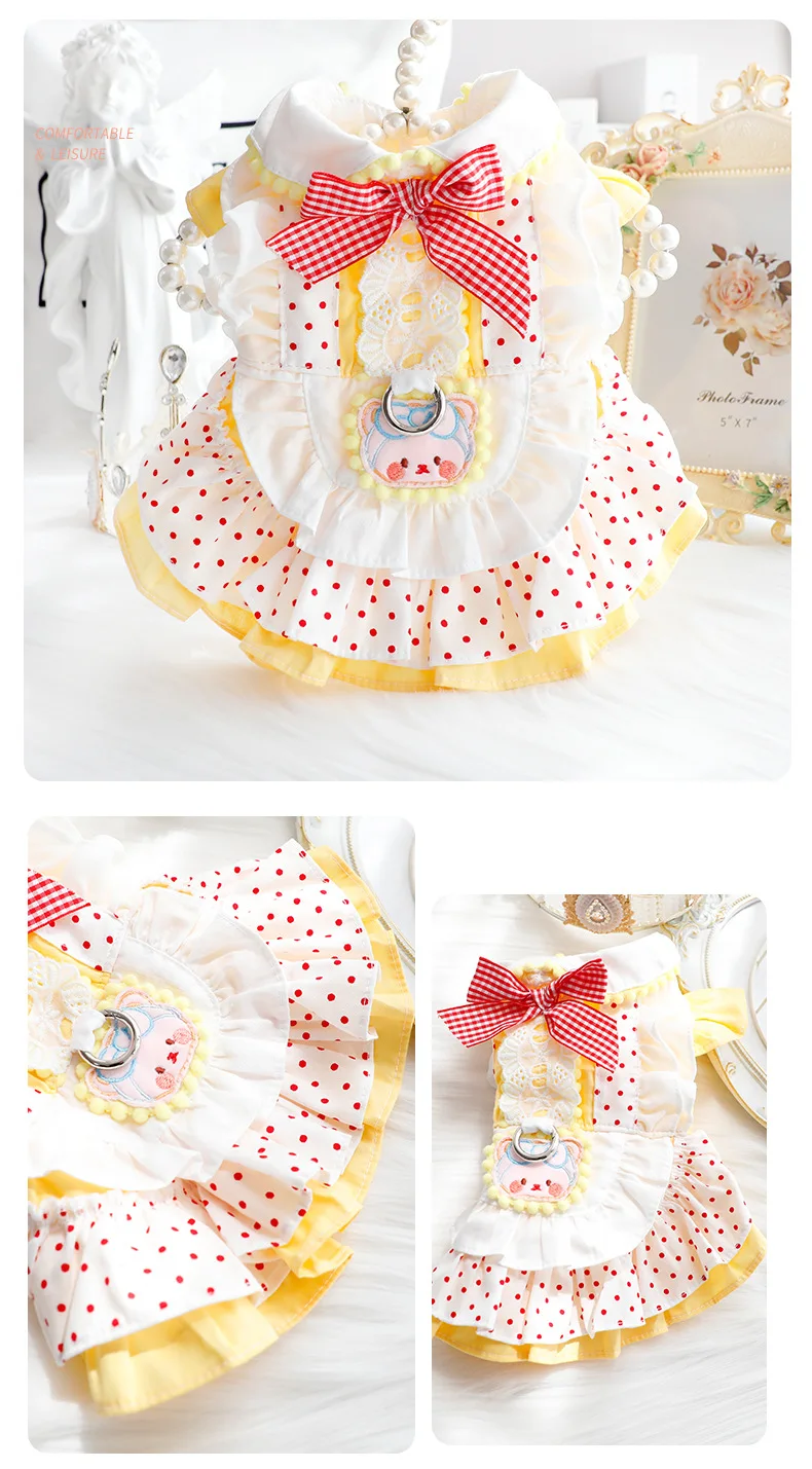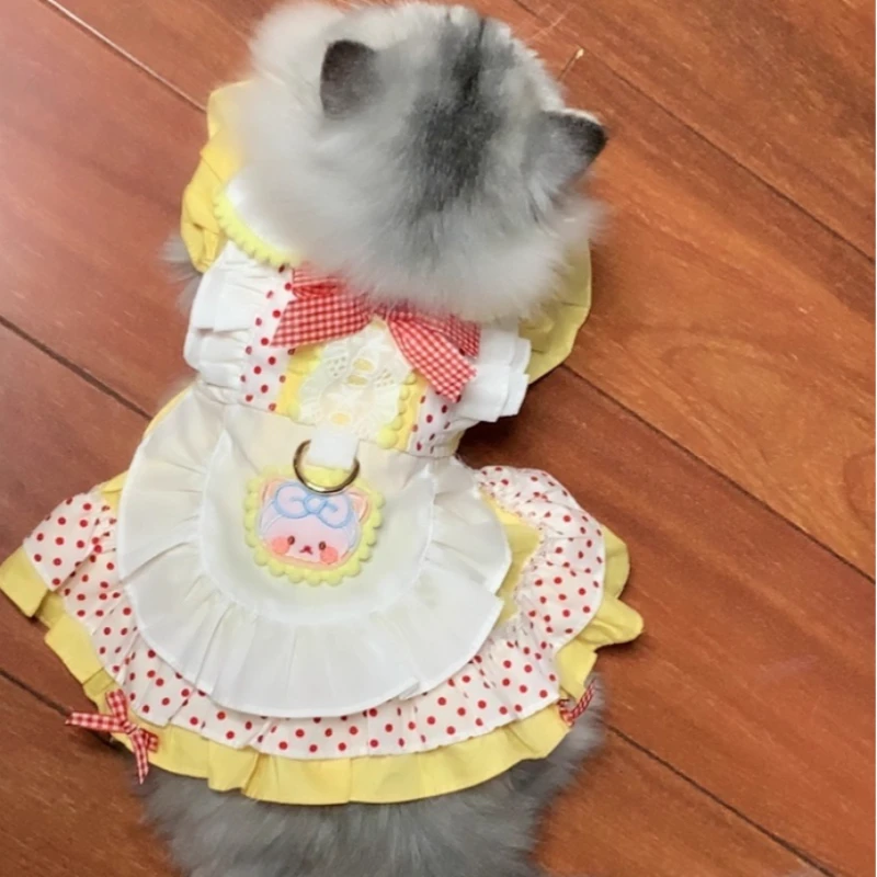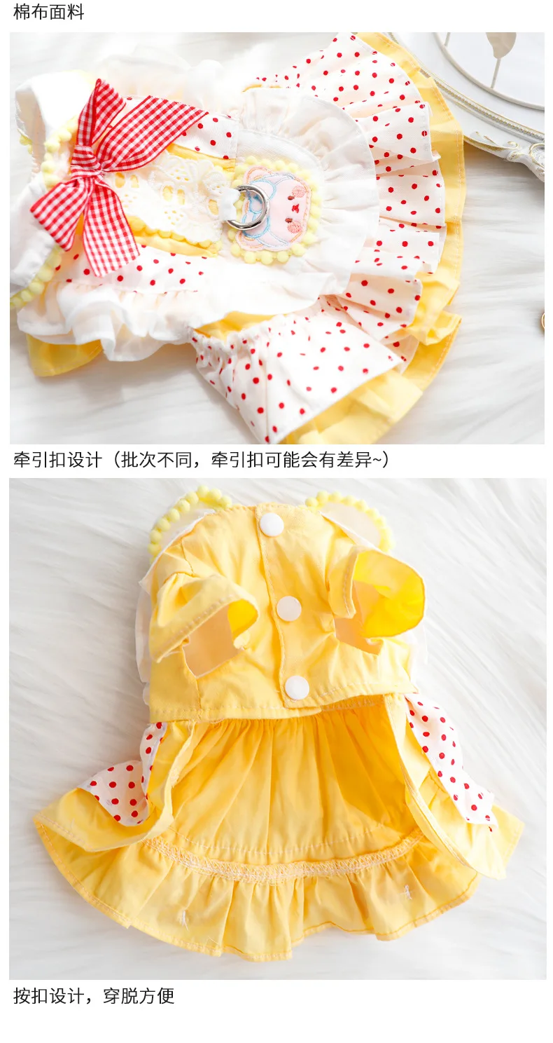 Ropa para perros primavera y verano vestido fino de princesa para gatos punto rojo oso amarillo tracción Lolita suministros para mascotas para perros pequeños