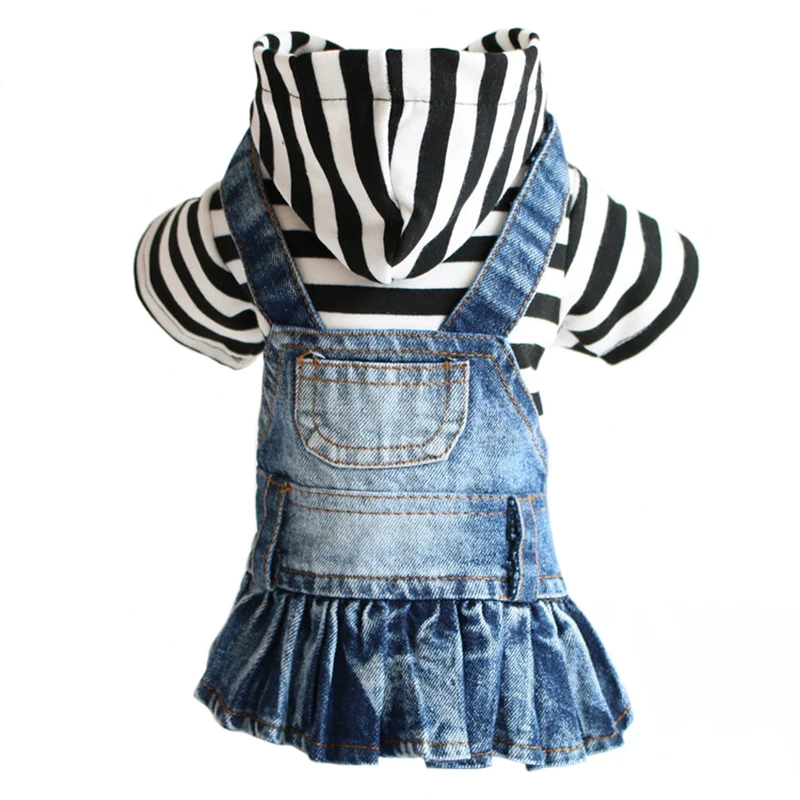 Ropa para perros de primavera y otoño, vestido vaquero para perros pequeños y medianos, chaqueta vaquera a la moda, camisa a rayas, abrigo con capucha, faldas para cachorros