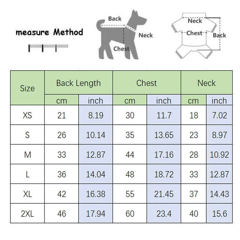 El tamaño de la ropa es entre 1 y 2 cm más grande que medir el tamaño del perro.