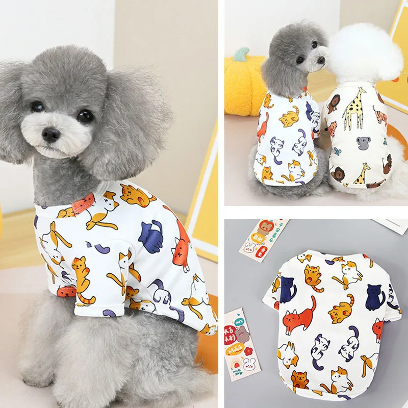 Camiseta blanca con estampado de animales para perros y gatos, ropa para gatos, sudadera para perros, camisa inferior de otoño e invierno, sudaderas con capucha, Bulldog Francés, perros pequeños y medianos