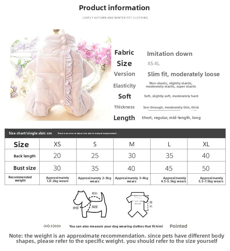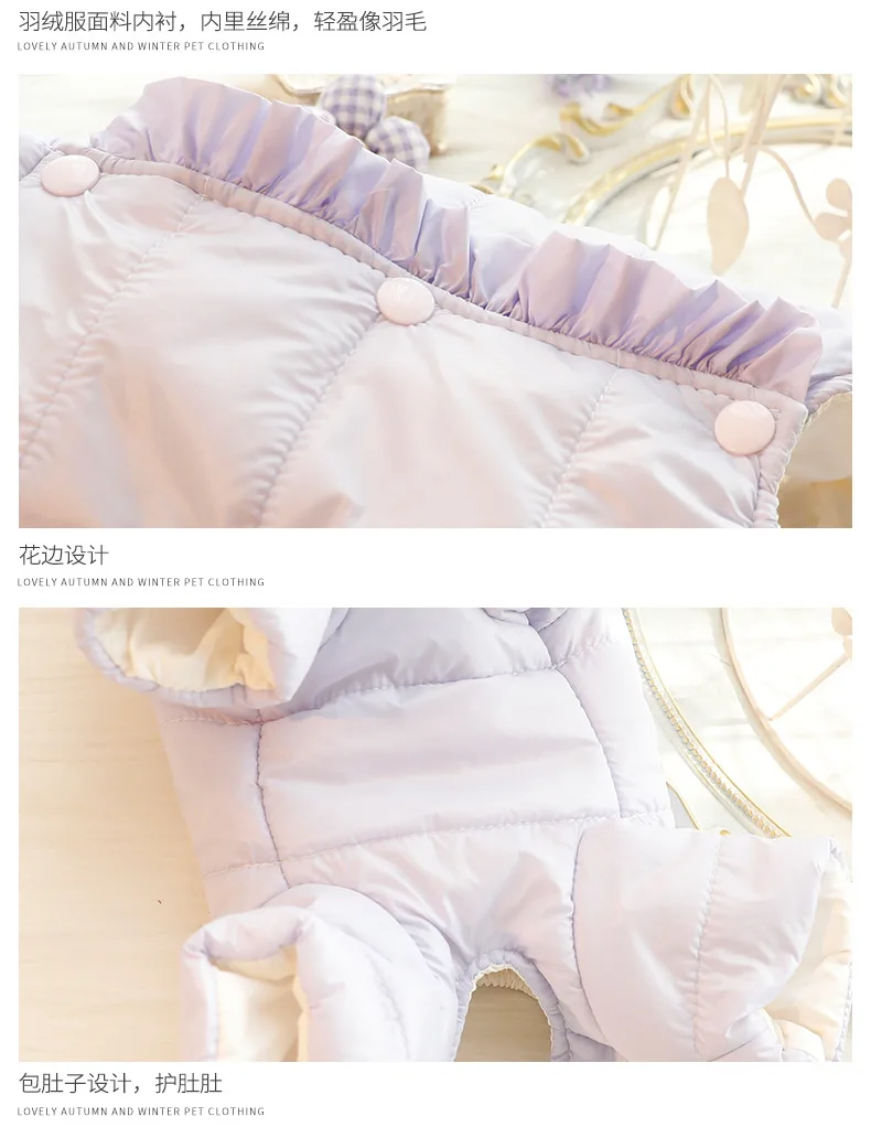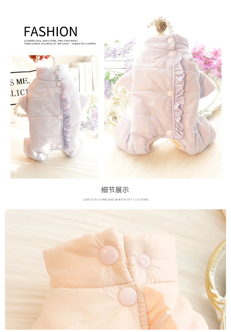Ropa para perros, ropa de invierno, protección del vientre de cuatro patas, ropa acolchada de algodón neutral, telas de plumas, suministro para mascotas de peluche para perros pequeños