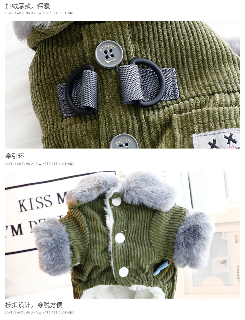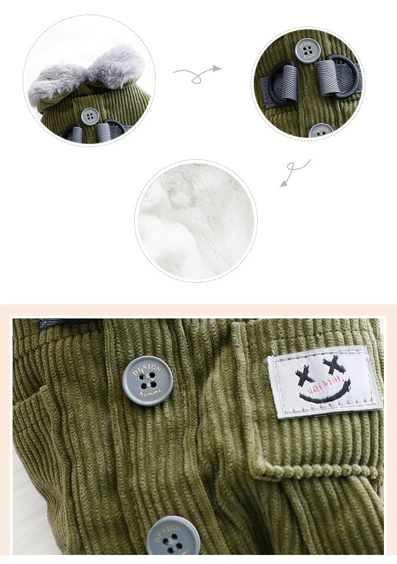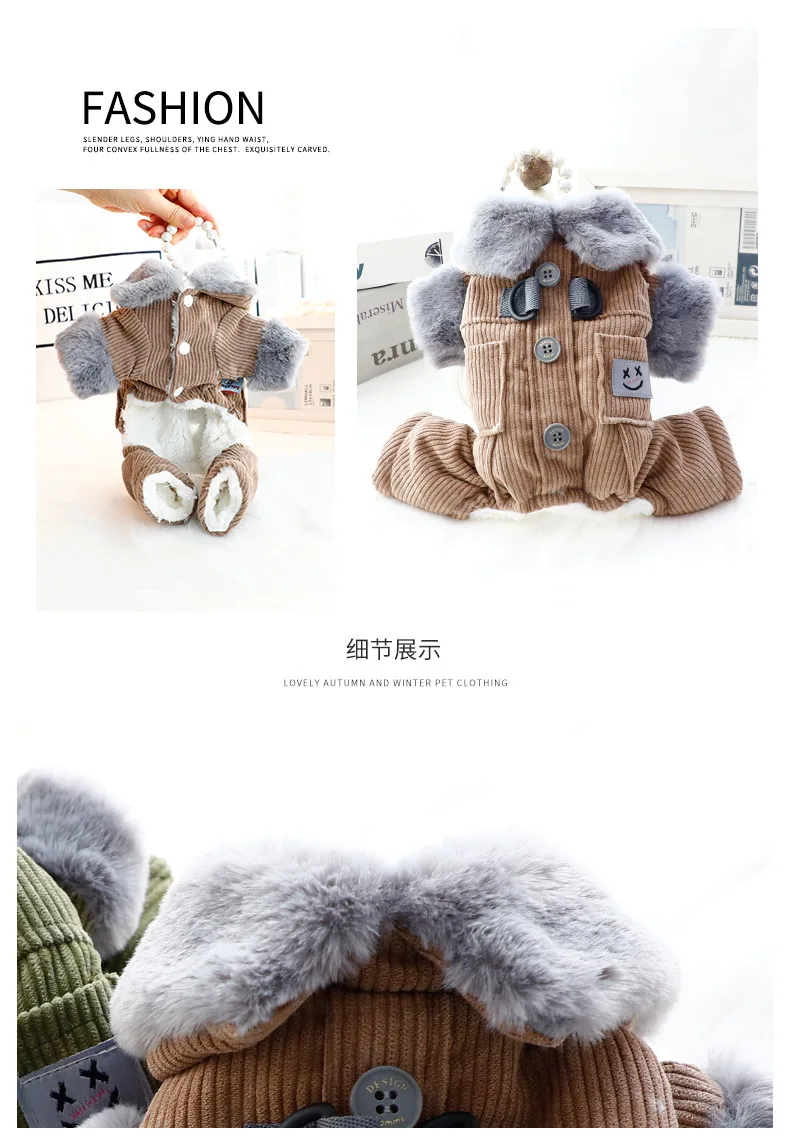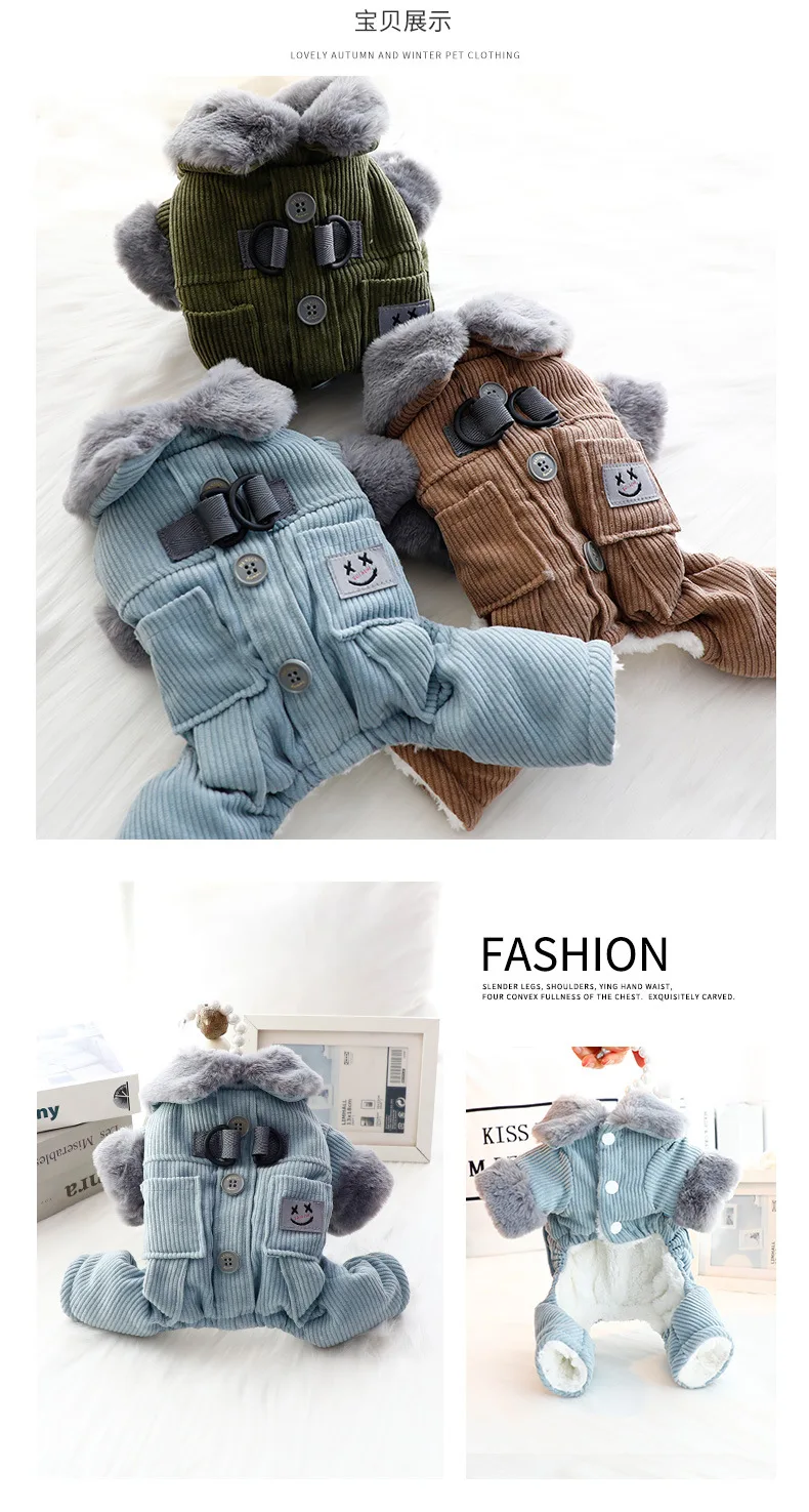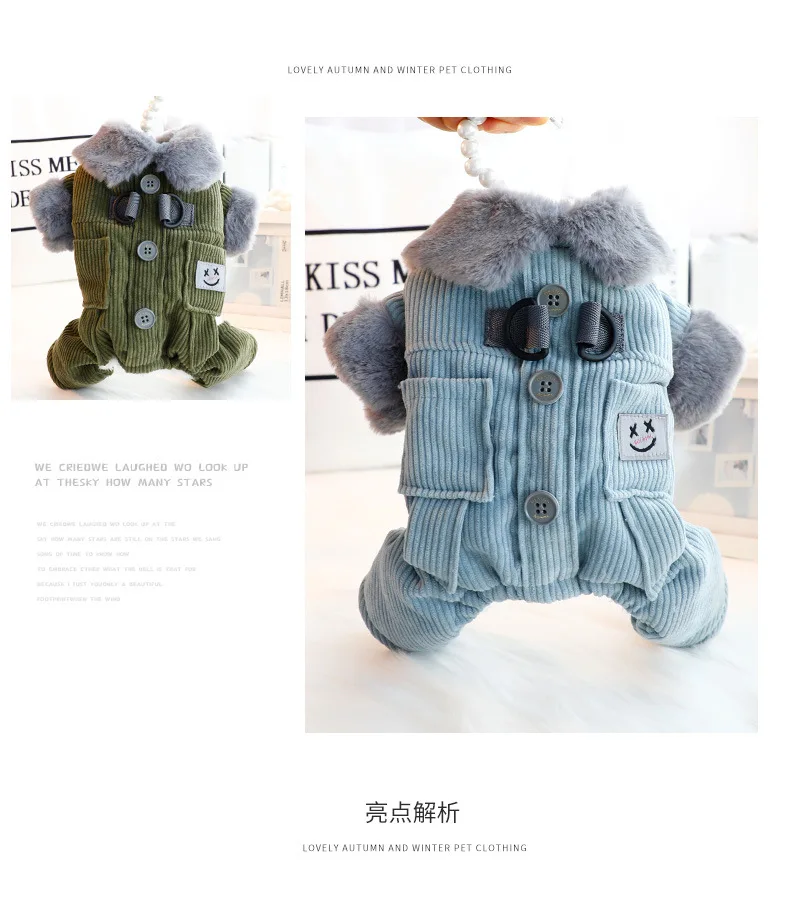Ropa para perros, ropa de otoño e invierno, bolsillos cuadrados gruesos, pana, tracción de cuatro patas, ropa de algodón, suministros para perros pequeños