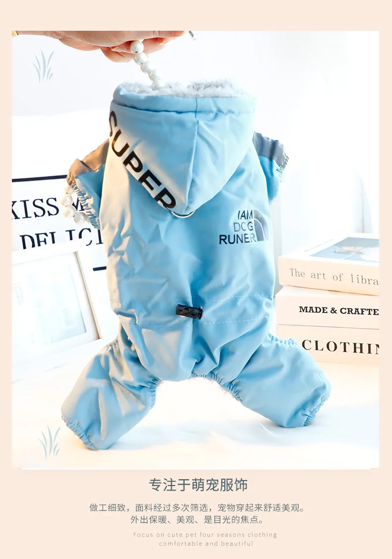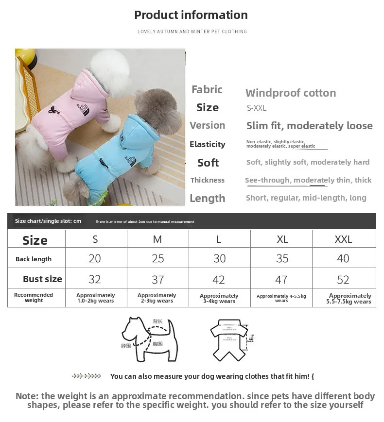 Ropa para perros, ropa de otoño e invierno, gruesa, bonita, deportiva, viento, cuatro patas, ropa de algodón, suministros para mascotas de peluche para perros pequeños