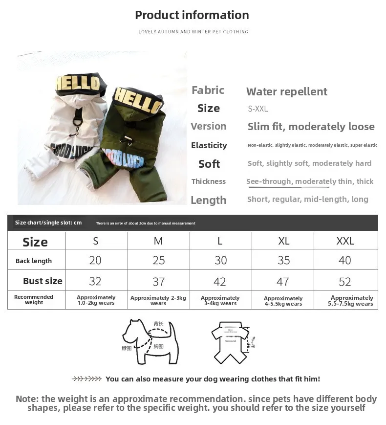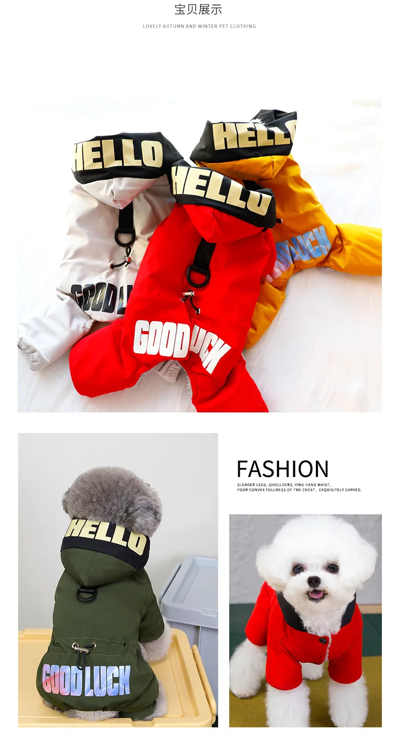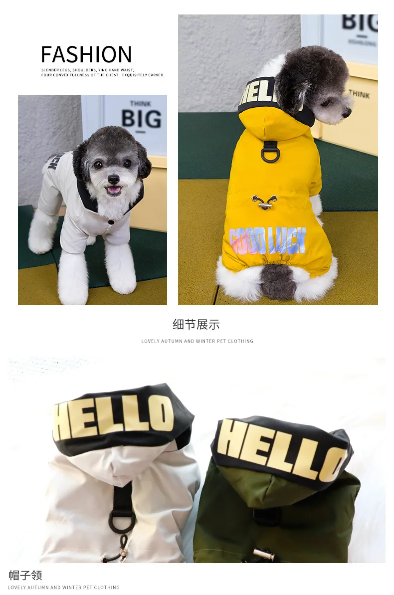 Ropa para perros, ropa de otoño e invierno, sombrero grueso estampado, ropa de algodón con carga de cuatro patas, suministros para mascotas para perros pequeños