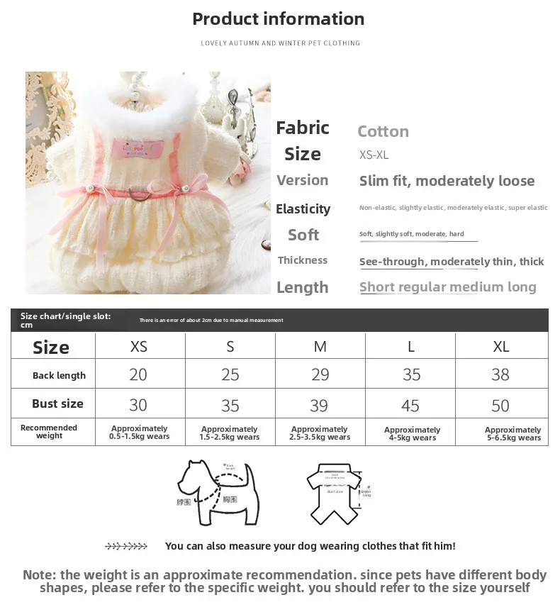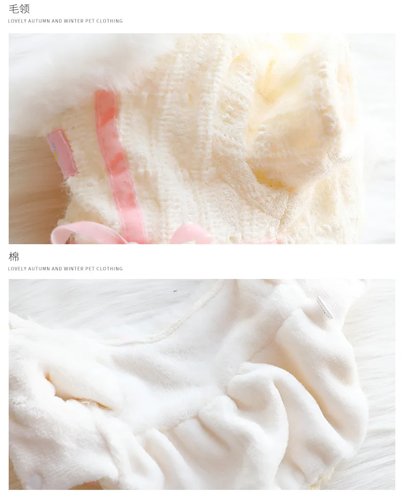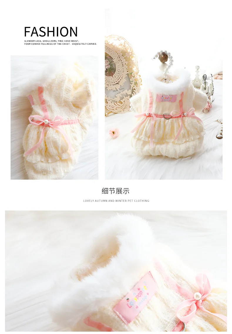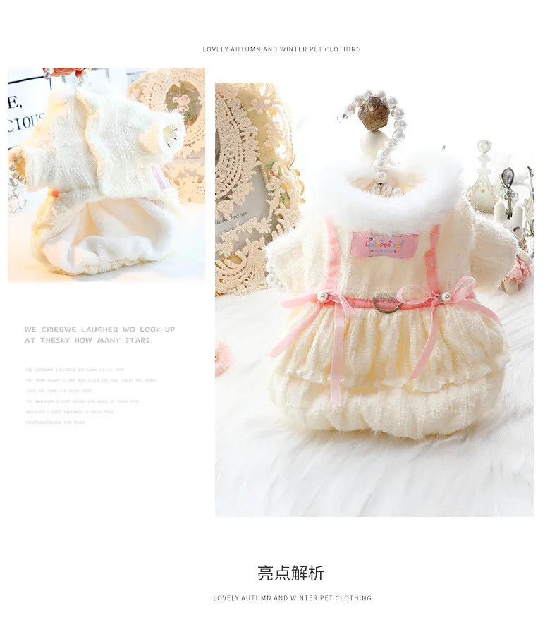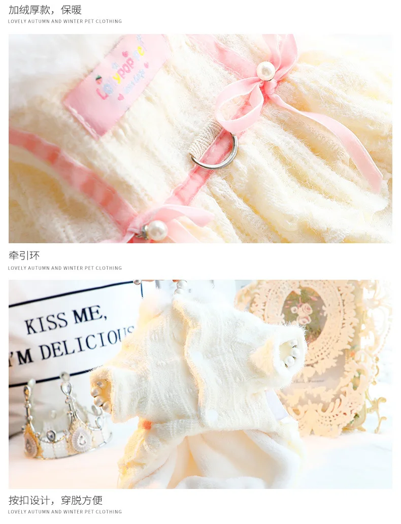 Ropa para perros, ropa de otoño e invierno, vestido grueso de princesa para gatos, pelusa suave que se puede remolcar, suministros para mascotas de peluche para perros pequeños