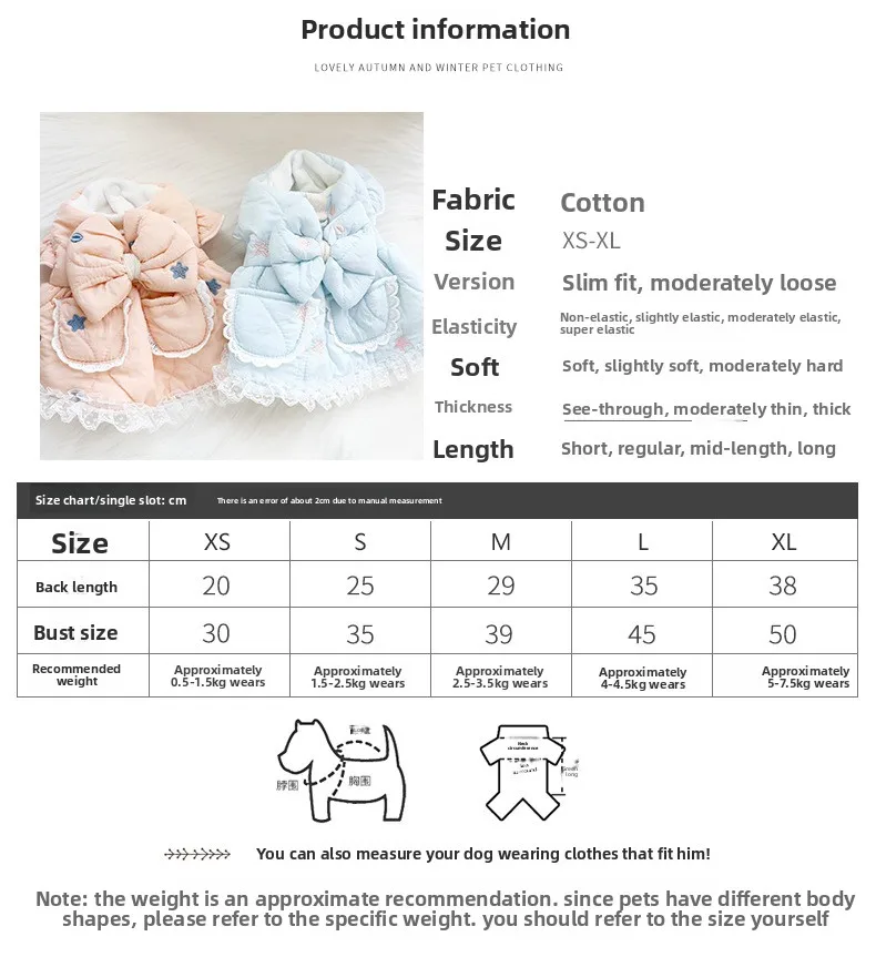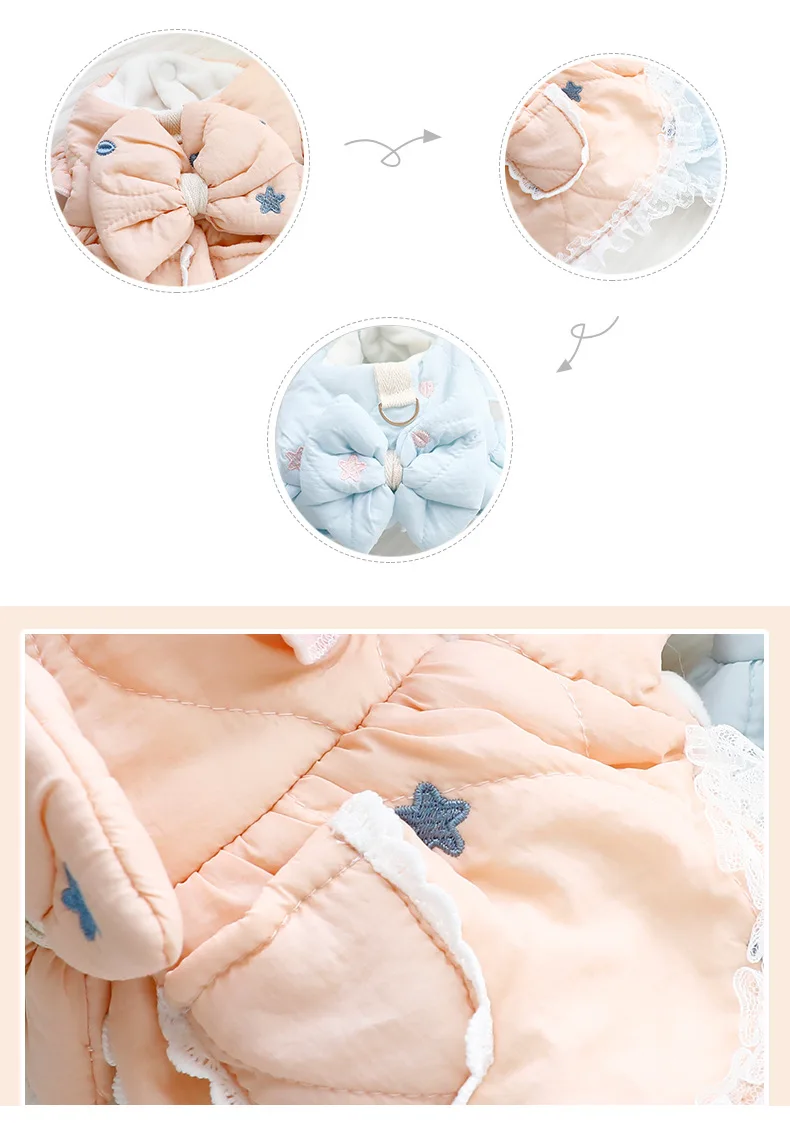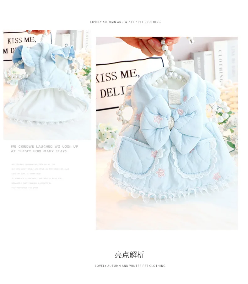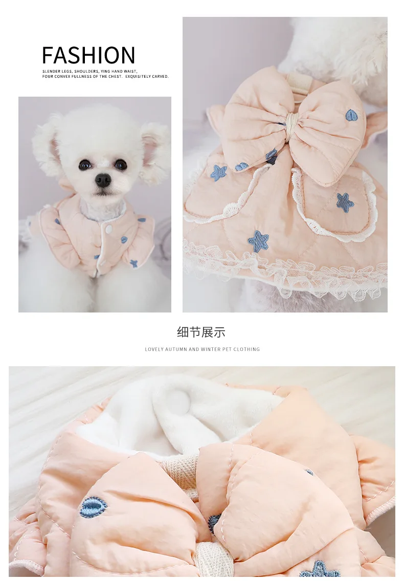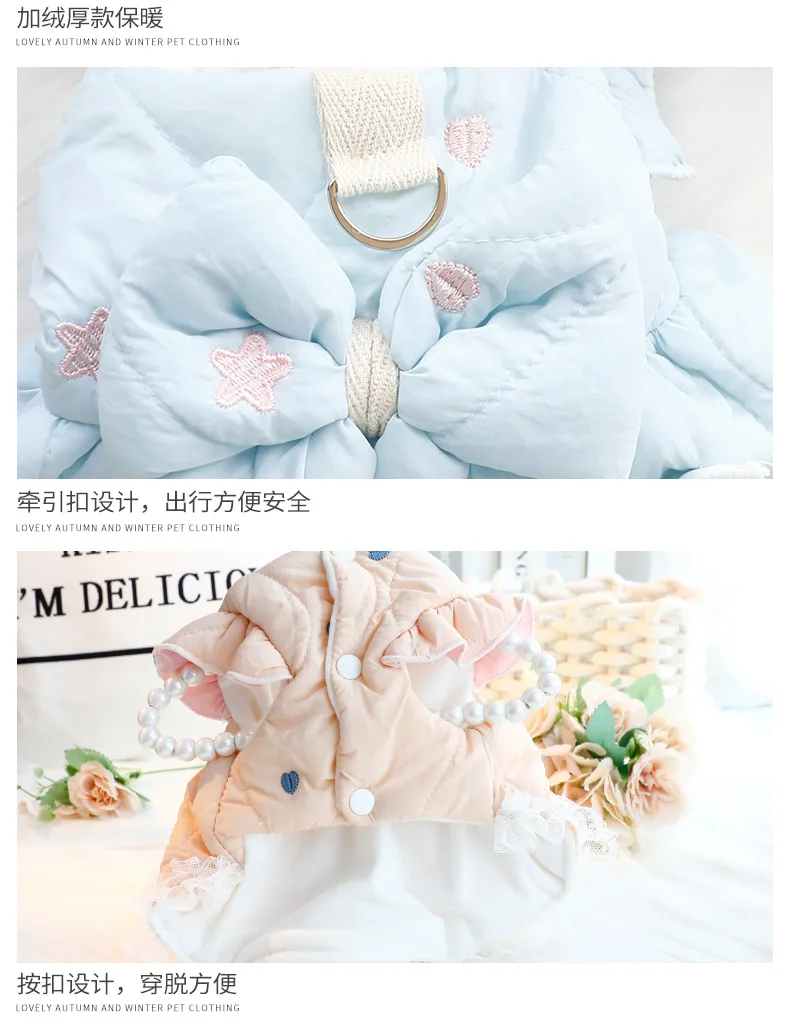 Ropa para perros, ropa de otoño e invierno, vestido grueso de princesa para gatos, ropa acolchada de algodón, suministros para mascotas pequeñas bordados