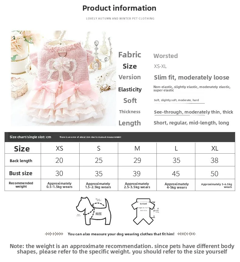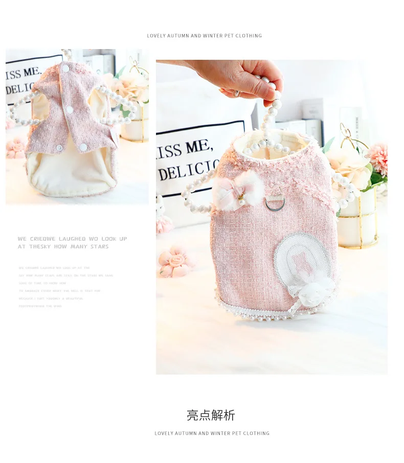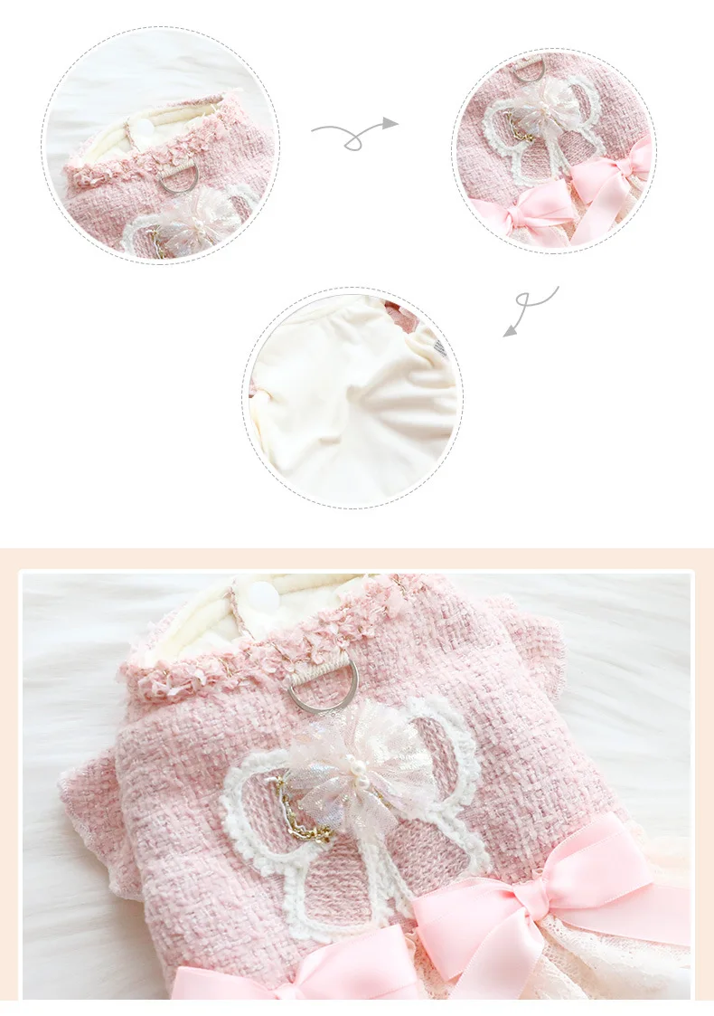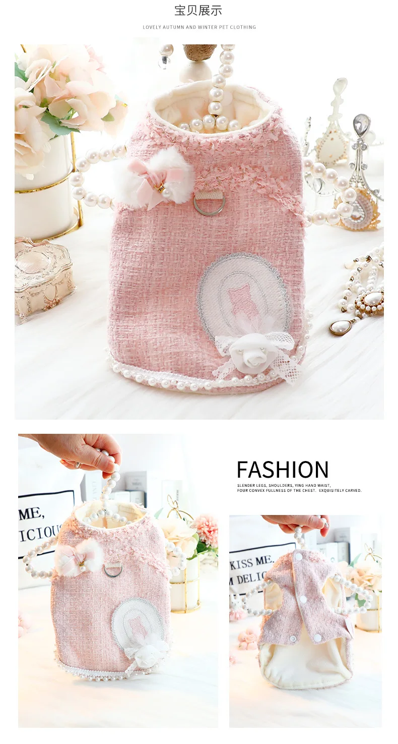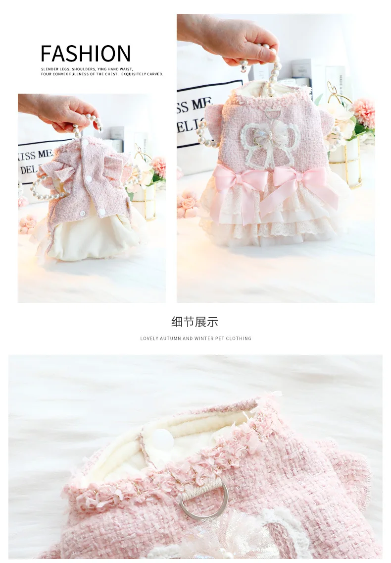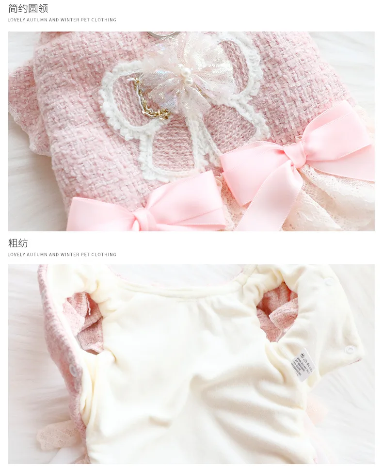 Ropa para perros, ropa de otoño e invierno, vestido grueso de princesa para gatos, tracción rosa, viento pequeño fragante, suministros para mascotas de peluche para perros pequeños