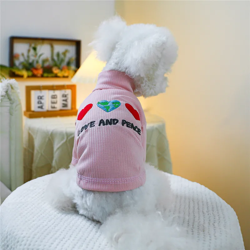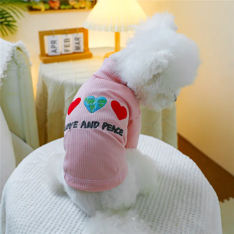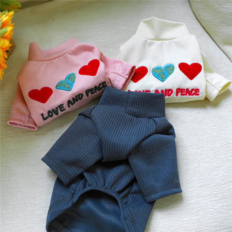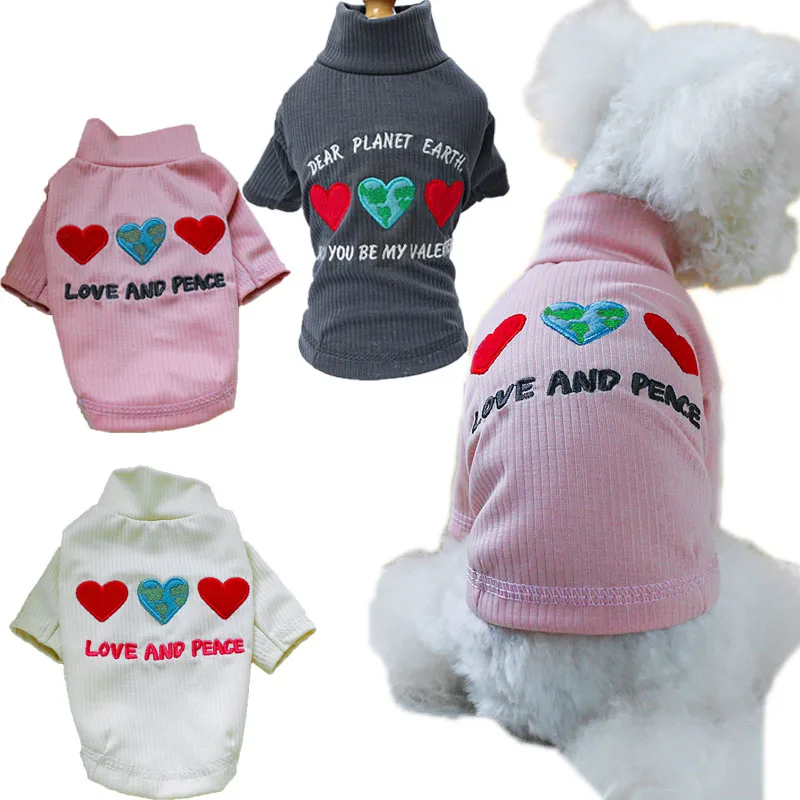 Sudadera con capucha para perro, ropa para mascotas, Chiwawawa, Dachshund, cuello alto, patrón de corazón, camisa inferior para cachorro, disfraz, camiseta XS
