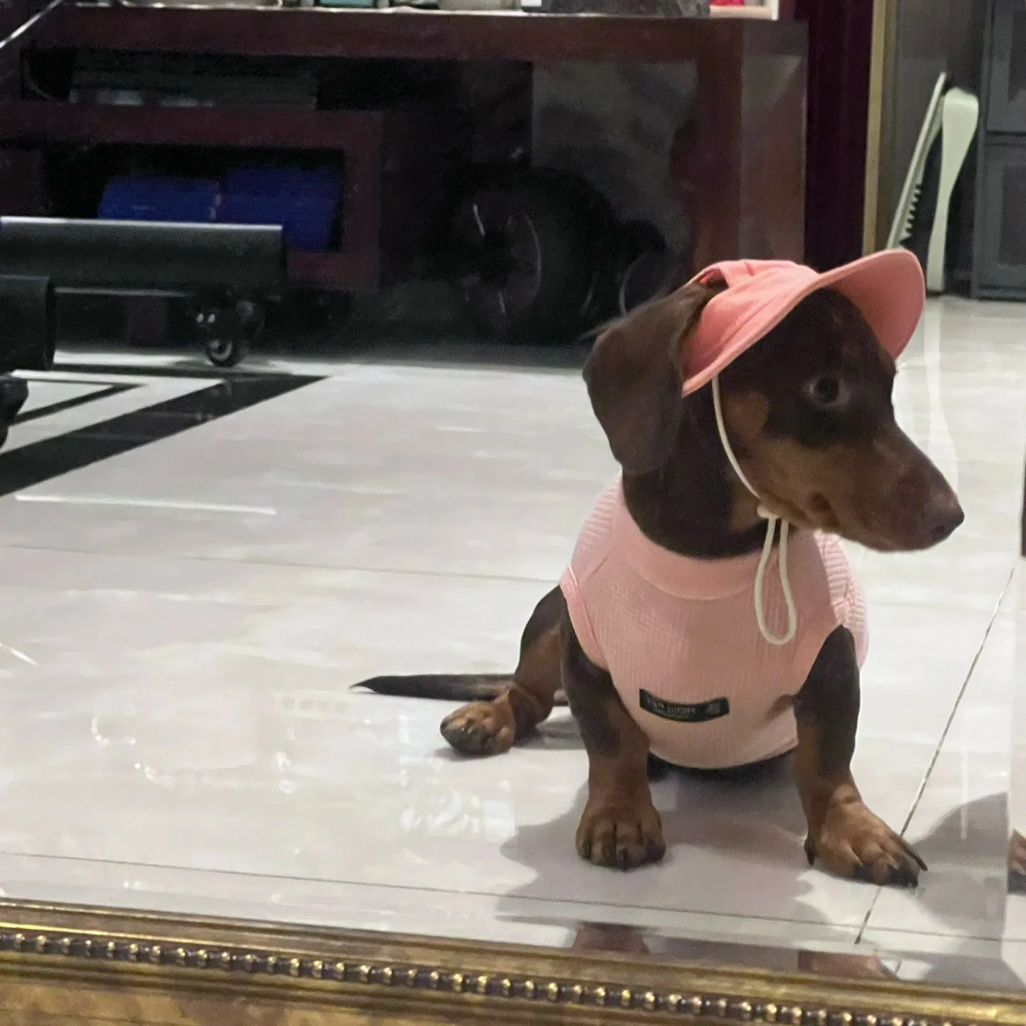 Ropa para perro Dachshund de 2 patas de color rosa dulce, chaleco elástico para primavera y verano para pequeños disfraces de perro gofre transpirable de Wiener para salchichas