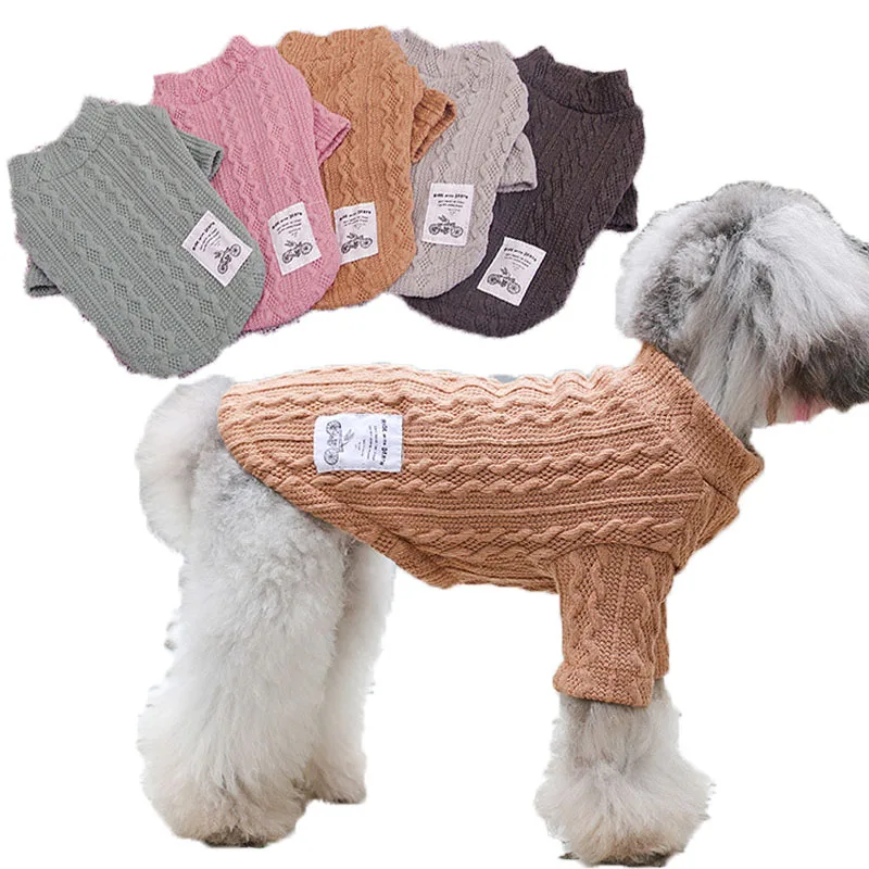 Ropa para perros, suéter de cuello alto de punto trenzado de invierno para perros pequeños, ropa de punto para perros salchicha, Chihuahua, sudadera para cachorros, jersey XS