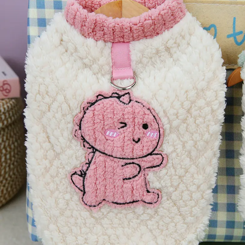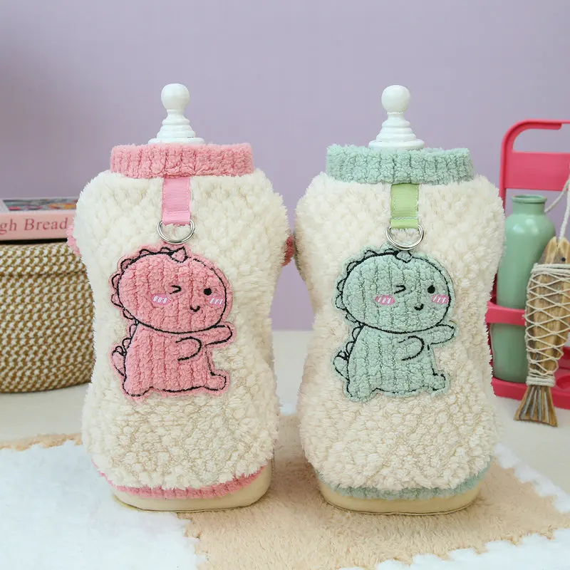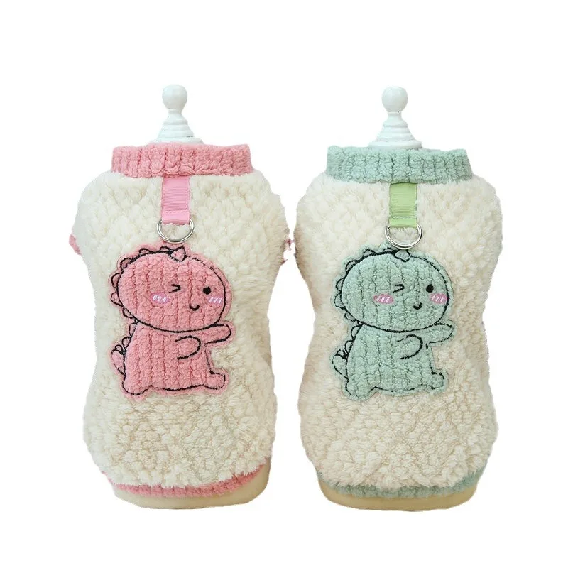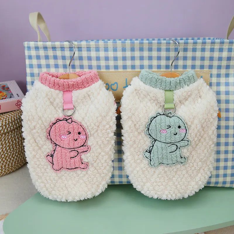 Ropa para perros de terciopelo de cordero para mascotas, ropa cálida de terciopelo de dinosaurio para perros pequeños, ropa gruesa para perros de oso de peluche para otoño e invierno