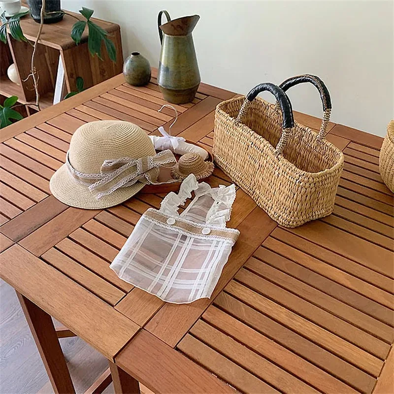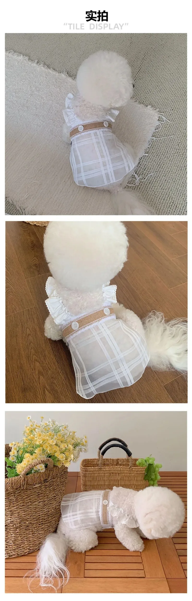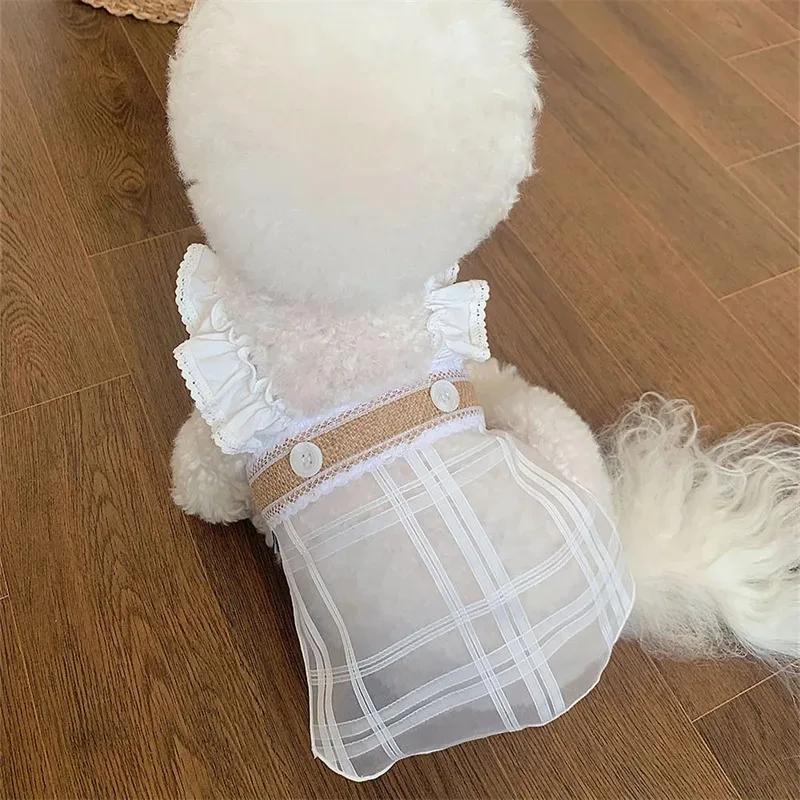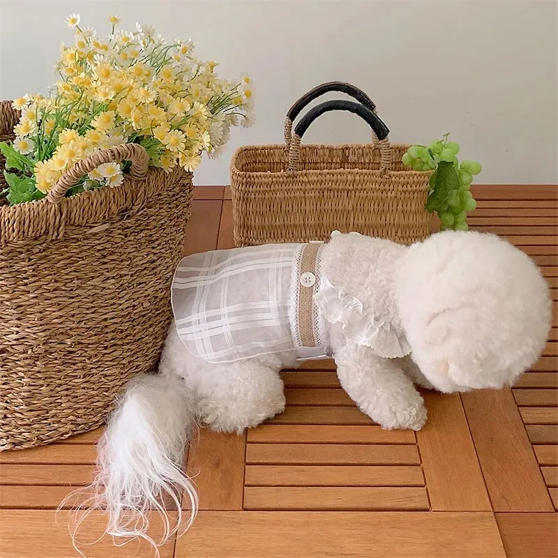 Ropa para perros, vestido de malla transparente de verano, chaleco plisado a cuadros con tirantes para el hombro, ropa para perros pequeños