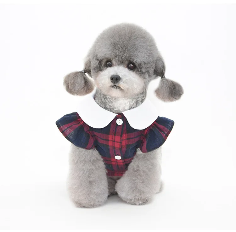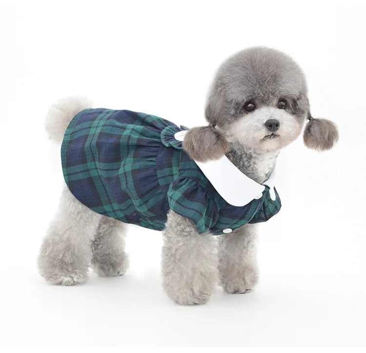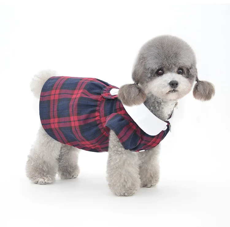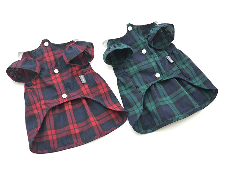 Ropa para perros, vestido para perro, falda a cuadros roja y verde con cuello redondo para niñas, perros pequeños y medianos, atractivo para perro de primavera y verano para peluche