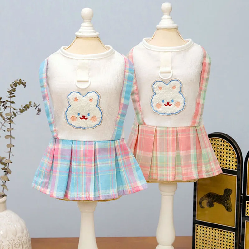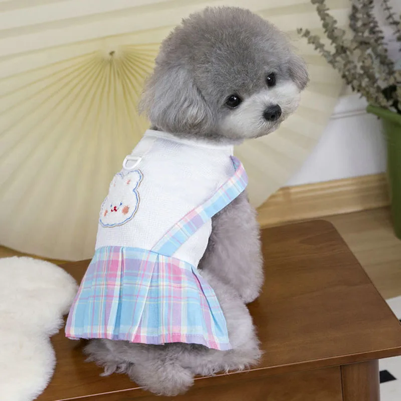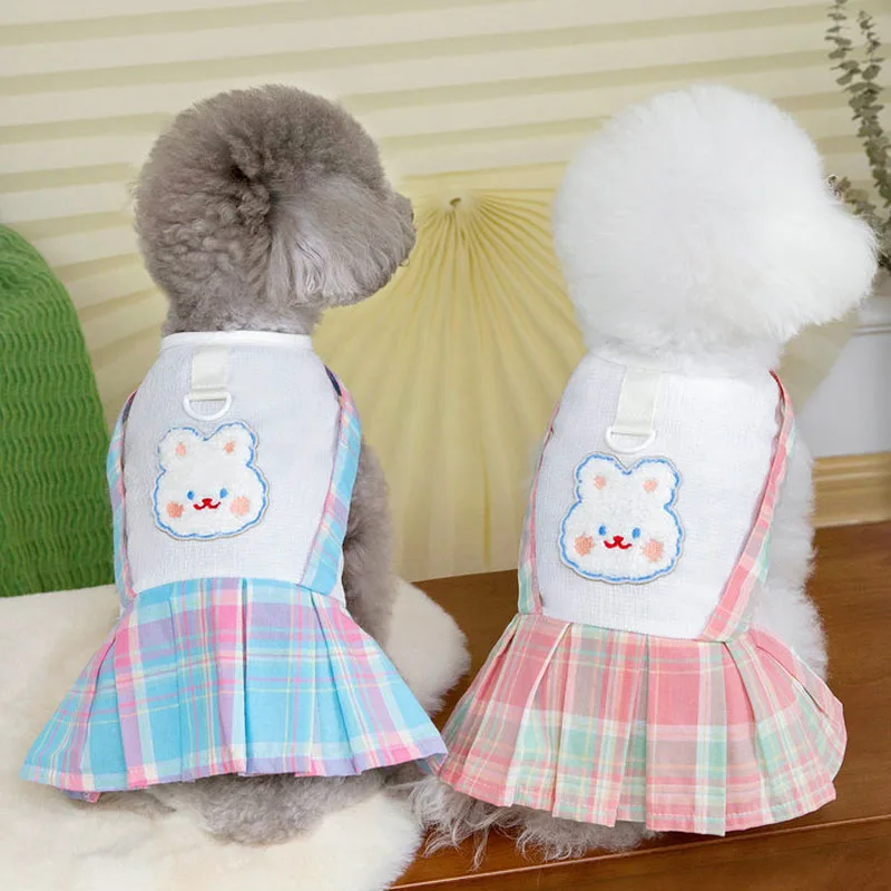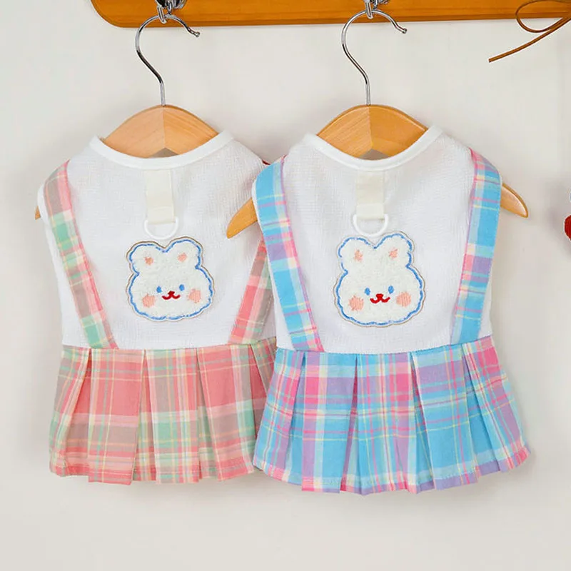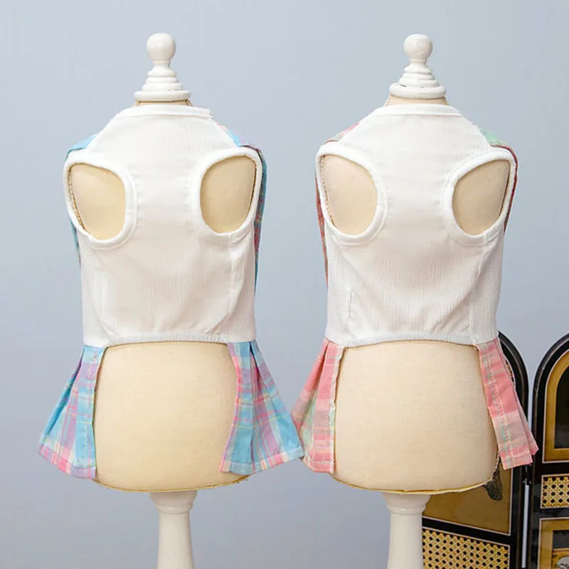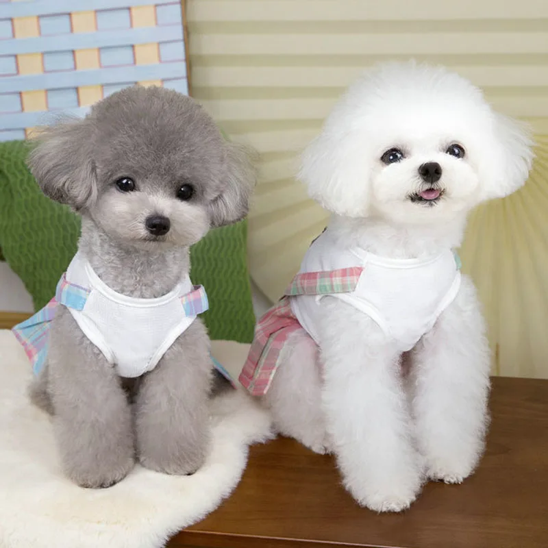 Ropa bonita para perros, ropa rosa y azul para niñas, vestido para perro, falda a cuadros con tirantes de verano, camiseta blanca, vestidos con capucha para perros pequeños Chiwawawa