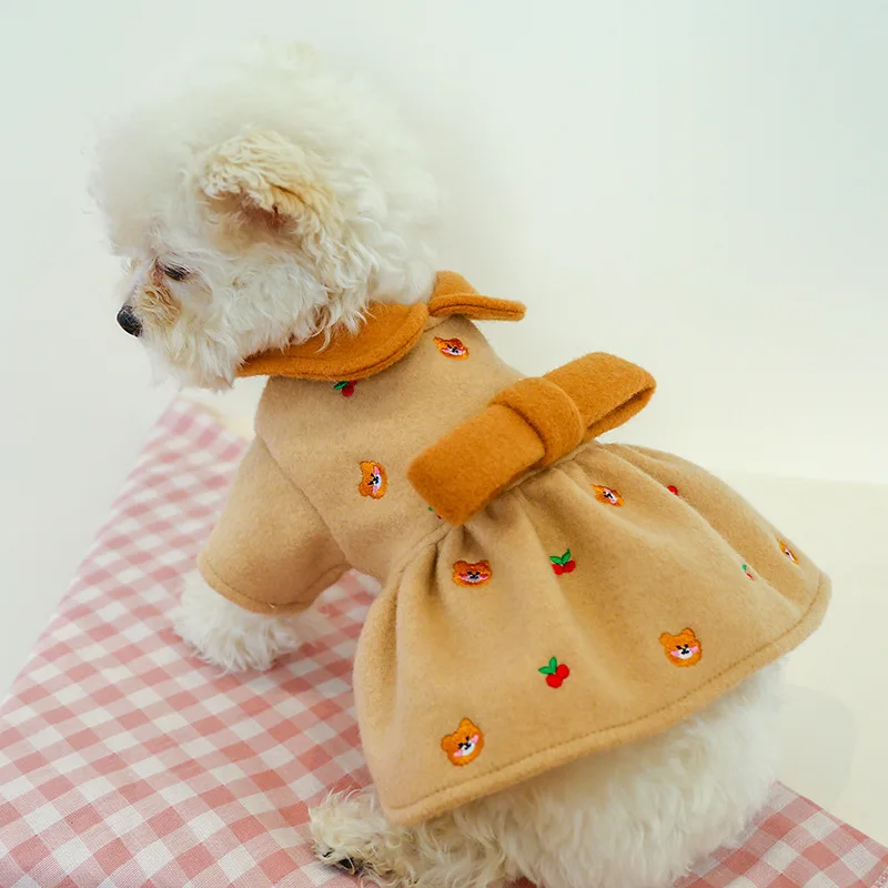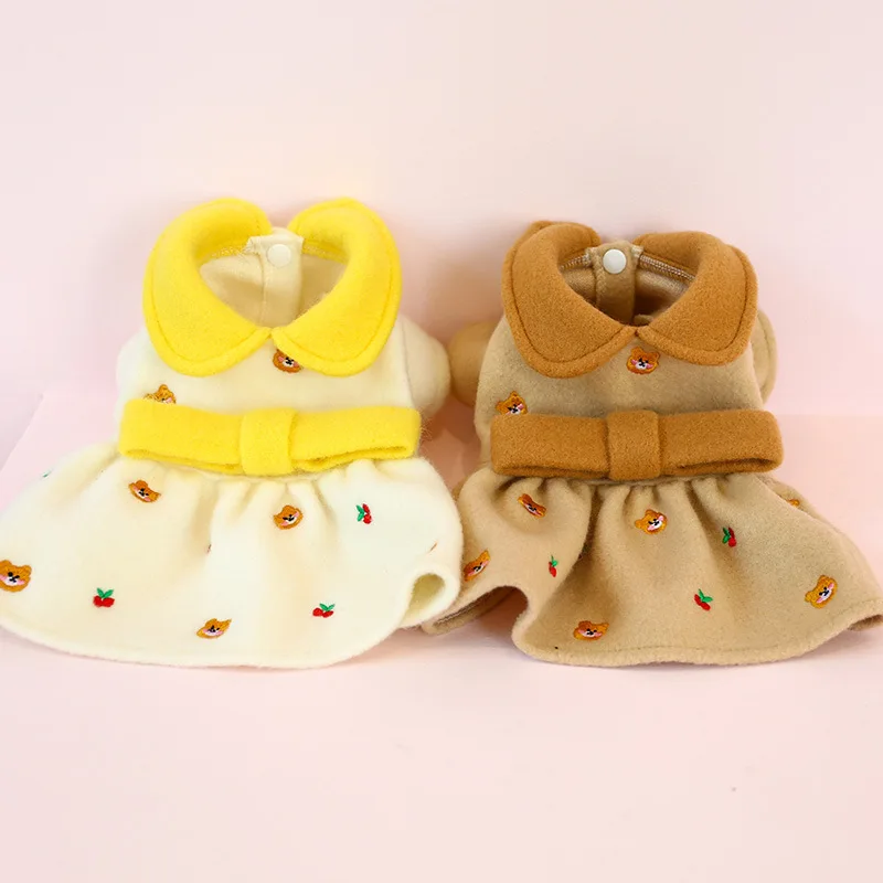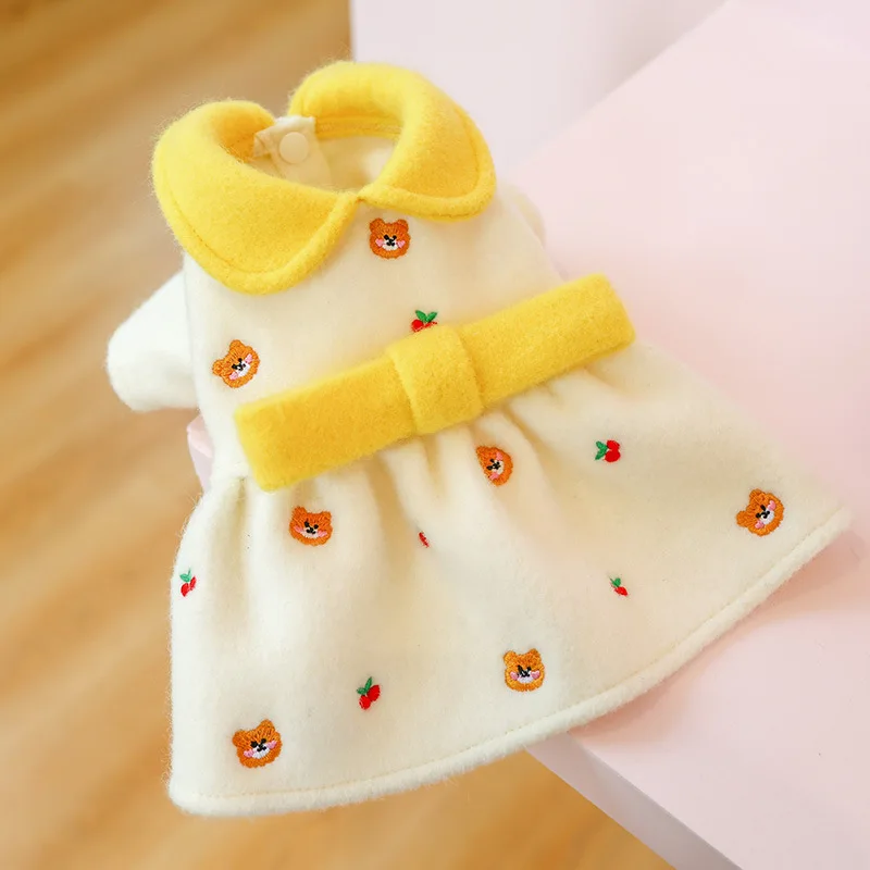 Ropa para perros y Chihuahua, vestido con estampado de frutas y dibujos animados, con lazo, Princesa, gato, falda para perros pequeños, chaqueta de peluche