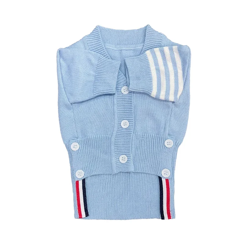 Ropa para perros y gatos, suéter de otoño e invierno, cárdigan, moda inglesa, corto, azul, gato, peluche, Chenery, ropa para mascotas