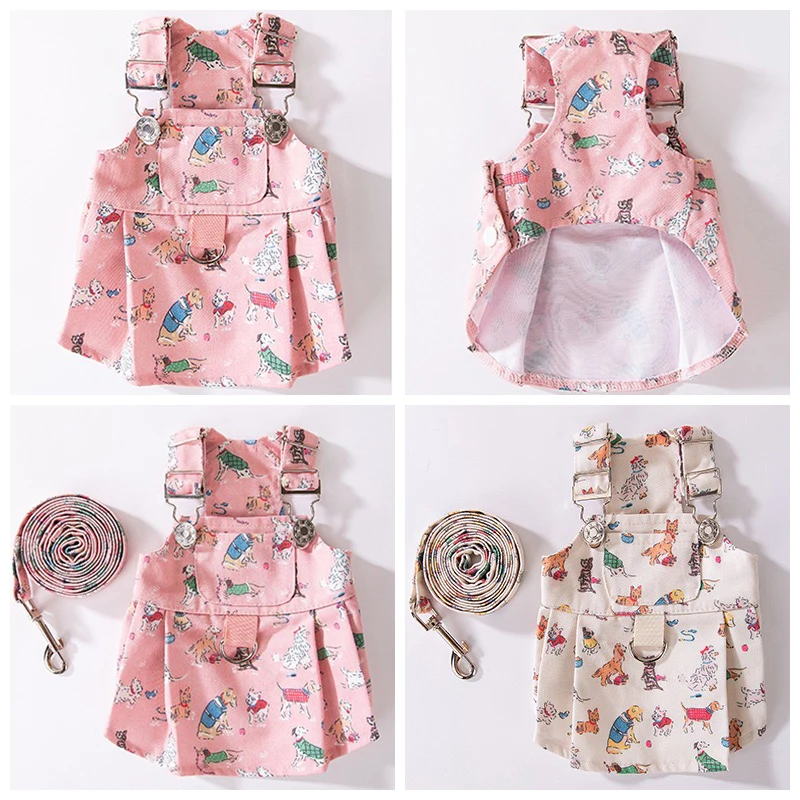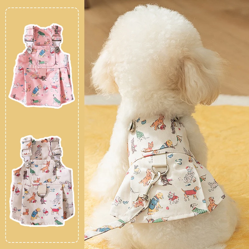 Ropa de primavera con estampado de garabatos para niña, chaleco para exteriores, vestido para gatos, monos ajustables, ropa para perros pequeños y dulces