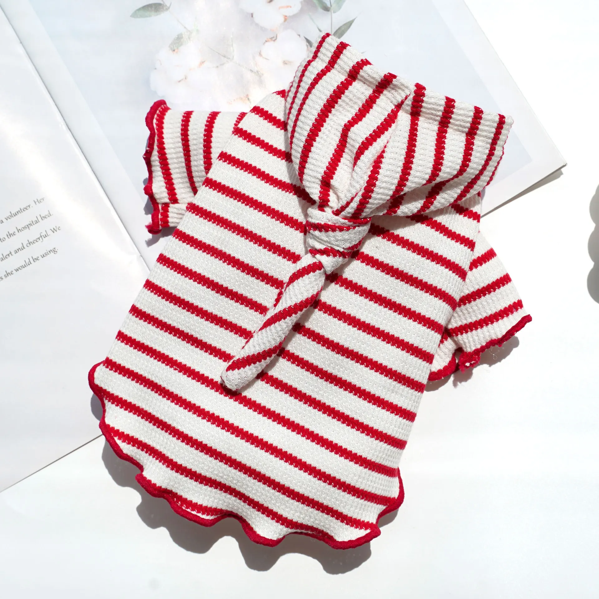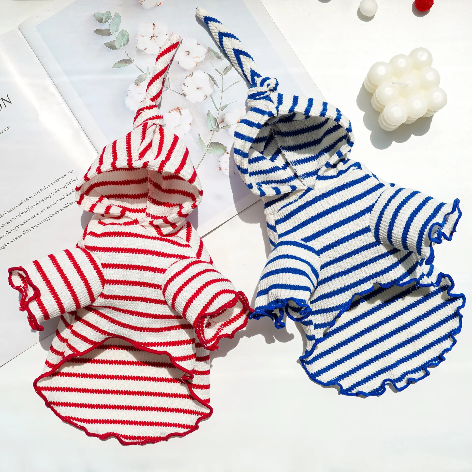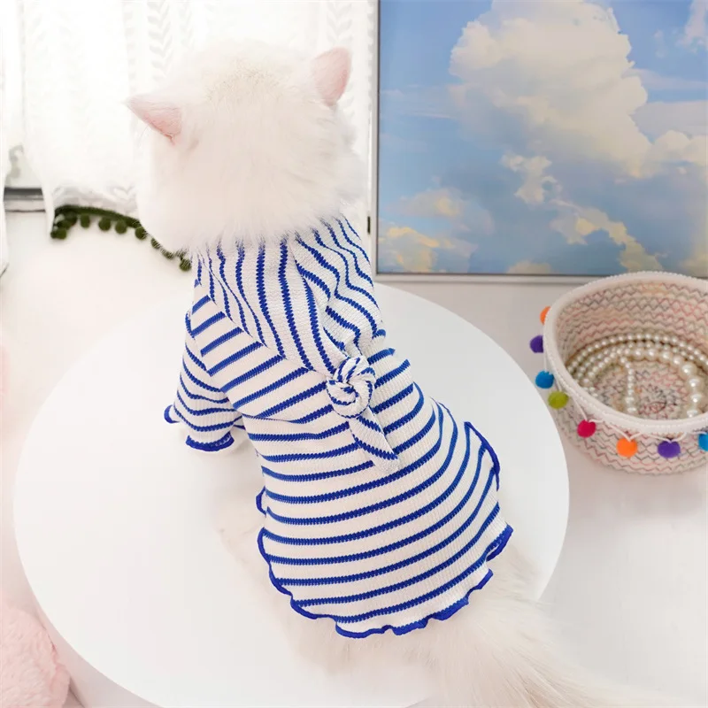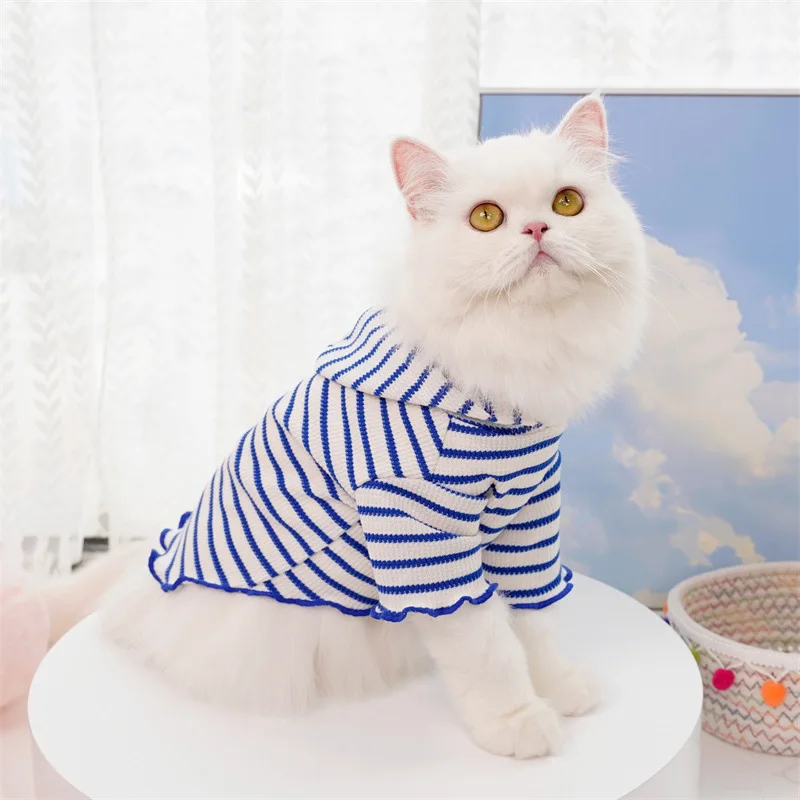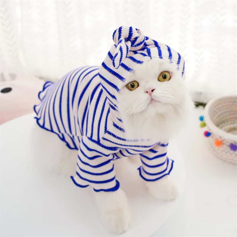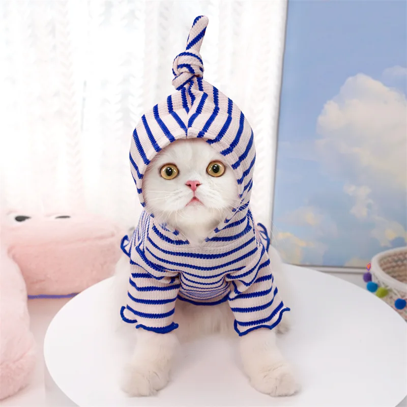 Ropa de primavera para mascotas, sombrero a rayas, ropa de dos patas, ropa para perros y gatos, Sudadera con capucha de peluche, ropa de fotografía bonita